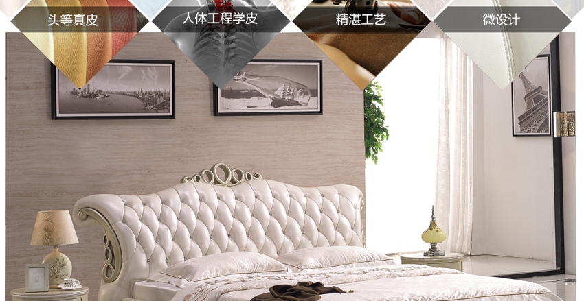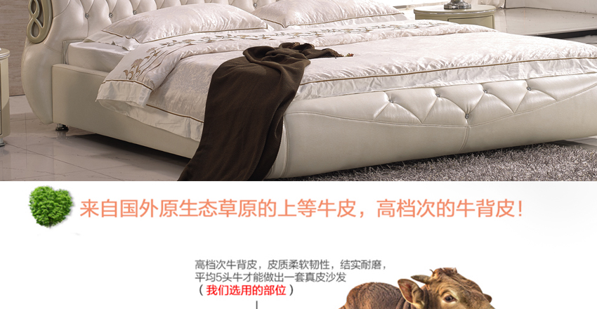 奥琼皮艺系列皮艺床现代皮艺床婚床双人床大户型雕花大床8805