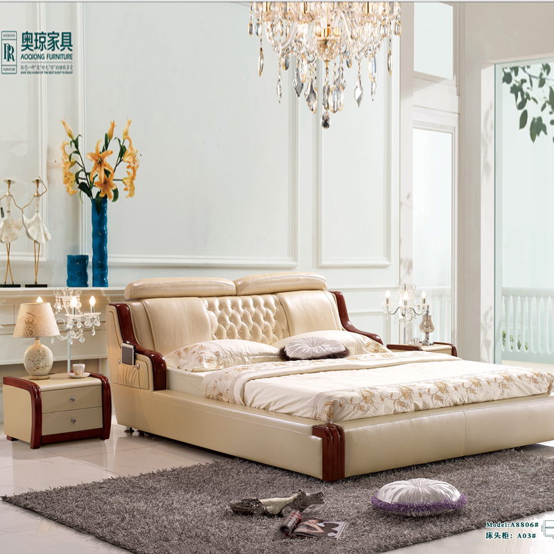 奥琼现代风格高品质实用双人床卧室舒适休闲高档婚床大床8806