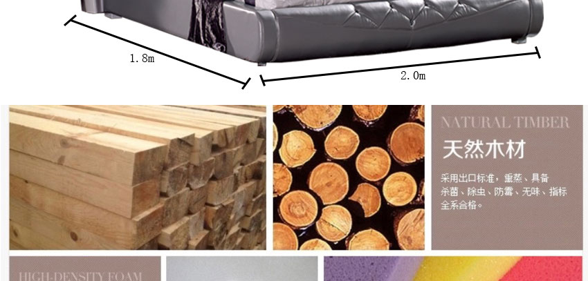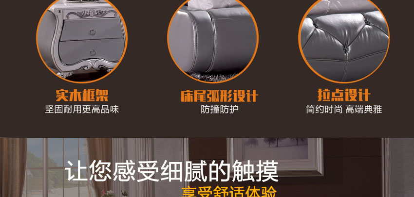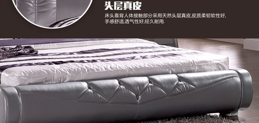奥琼皮艺床双人床现代简约皮床1.8米 软体床1.8米婚床A8801#