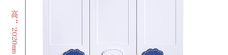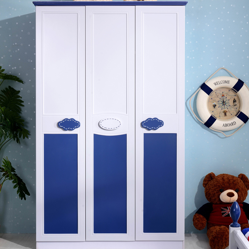 酷威贝贝儿童3门简易大衣柜 卧室储物儿童木质衣柜衣橱阳台柜817