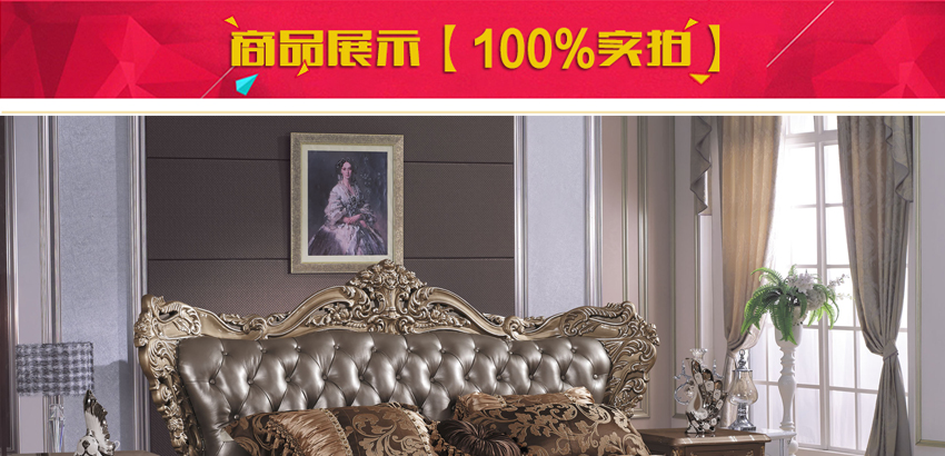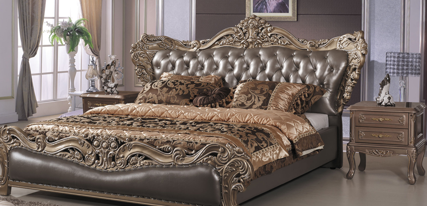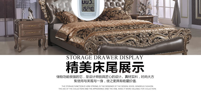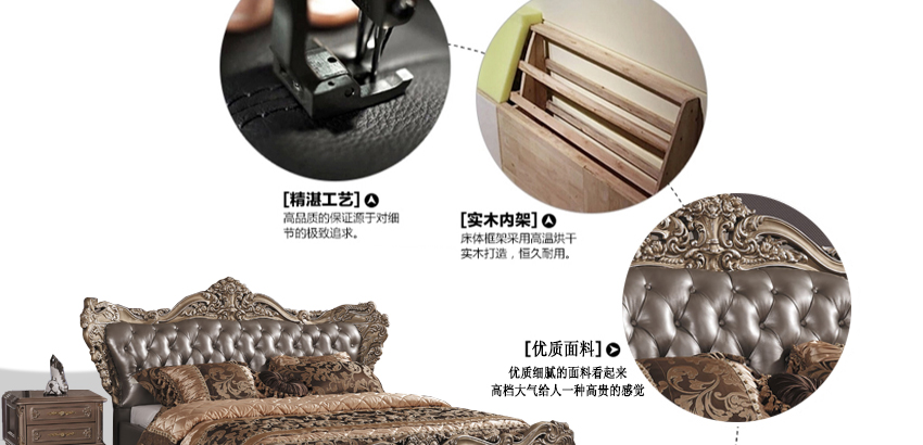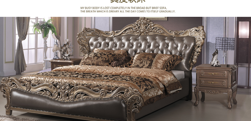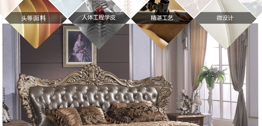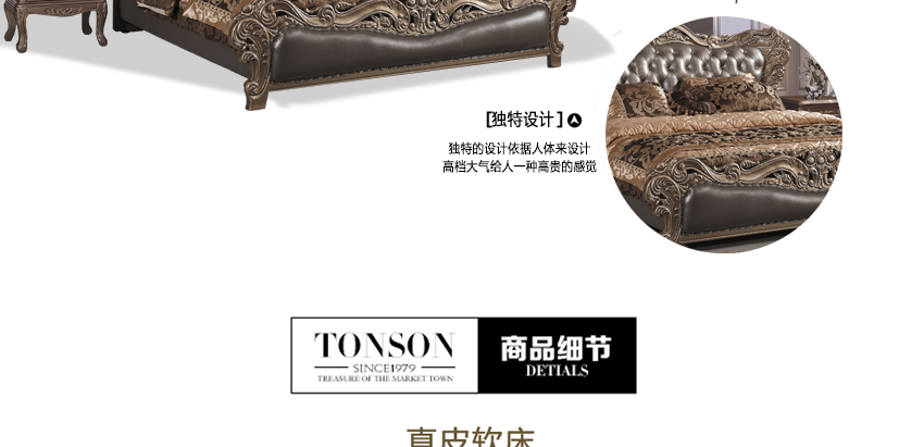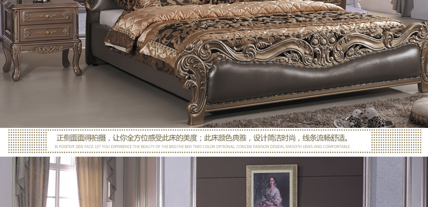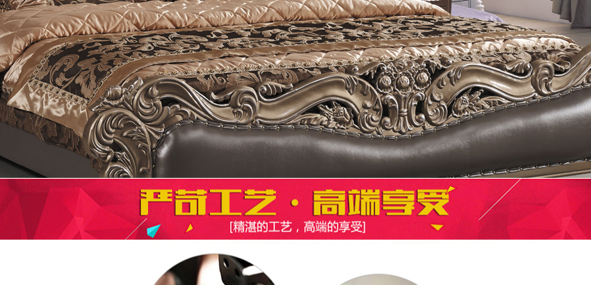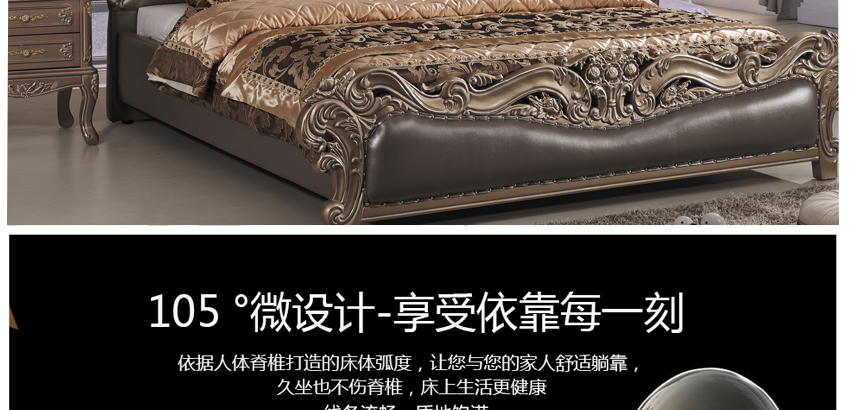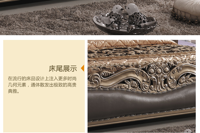 奥琼卧室皮艺系列皮艺床 大气雕花休闲舒适皮艺床婚床807