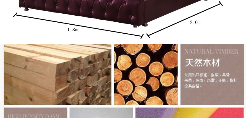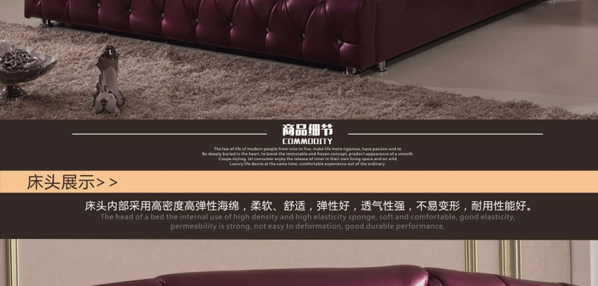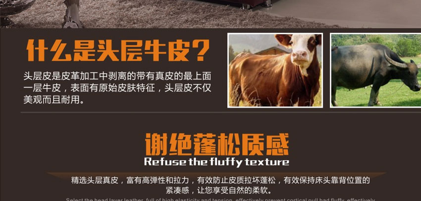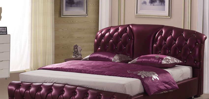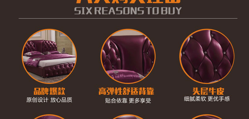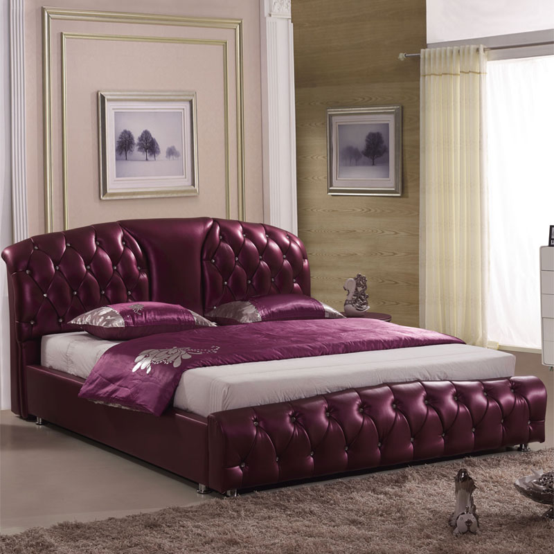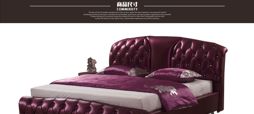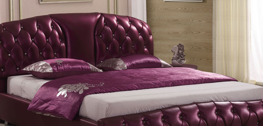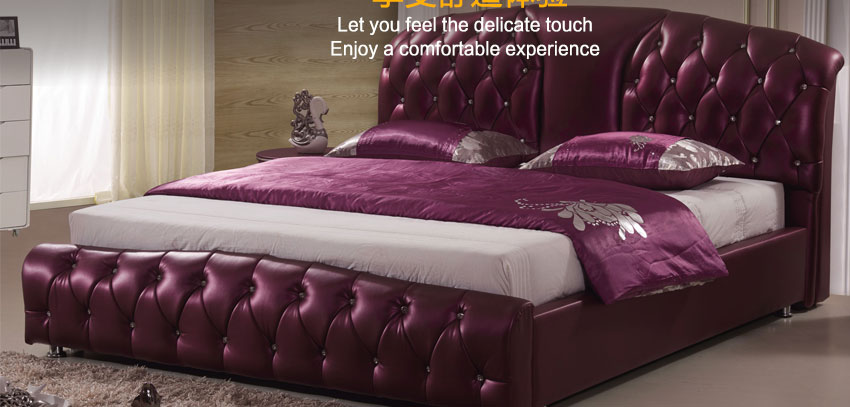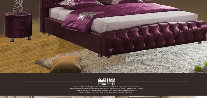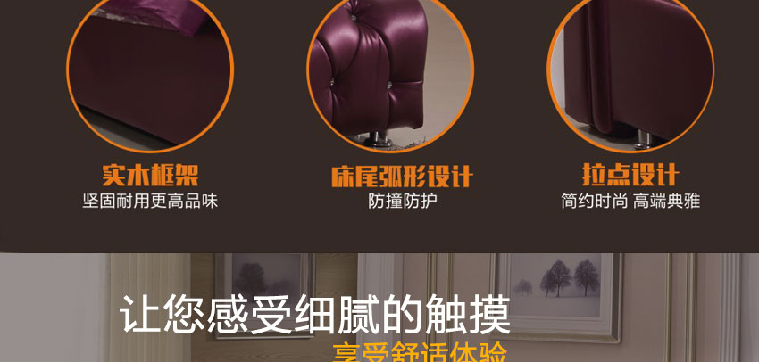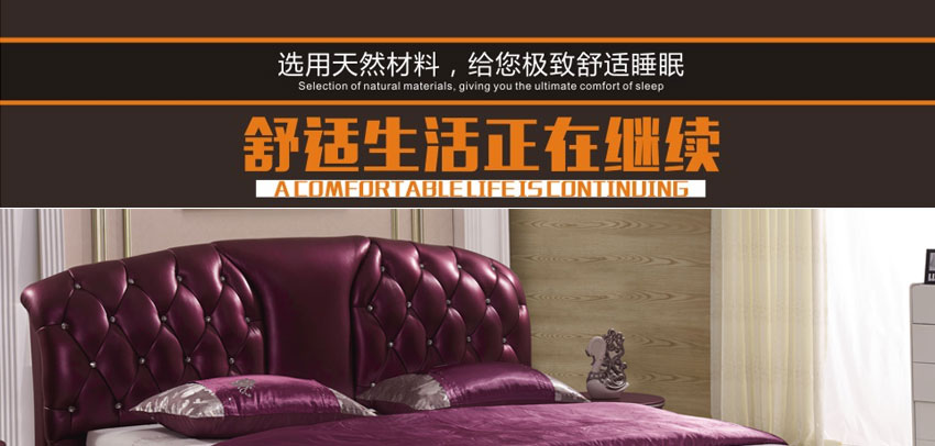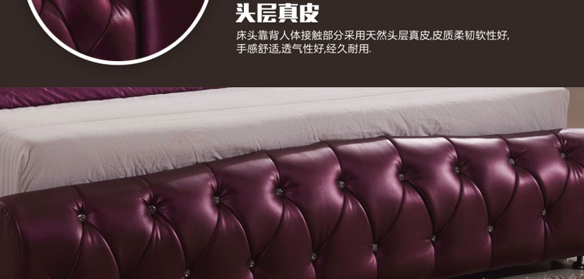 奥琼简约现代风格真皮床 双人床1.8米卧室舒适大床现代床8833