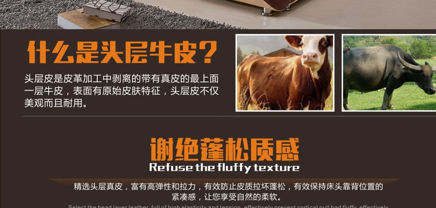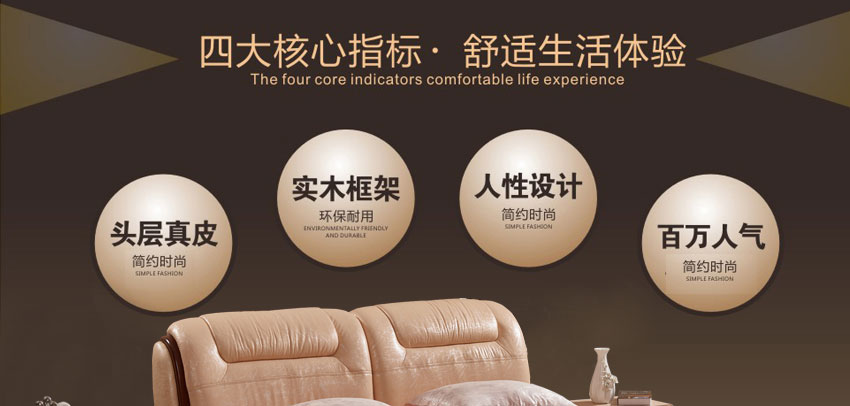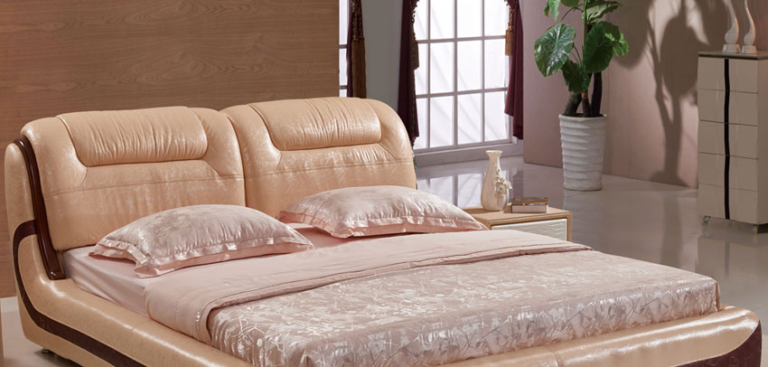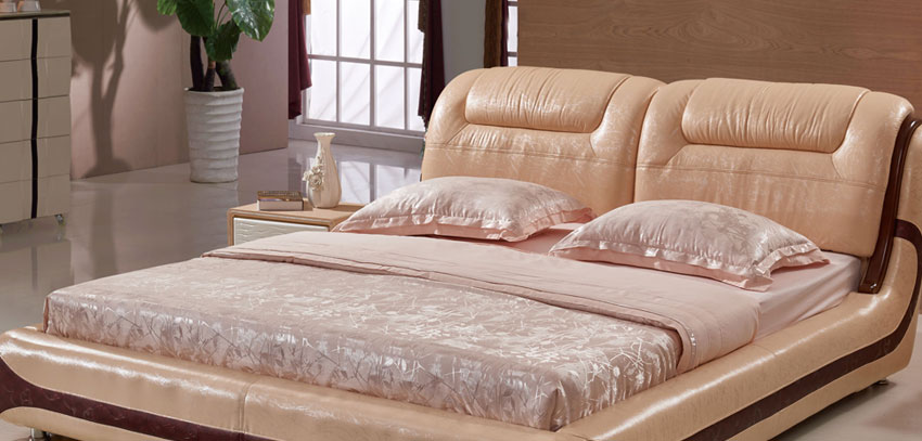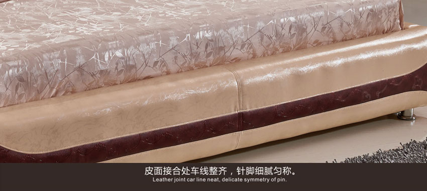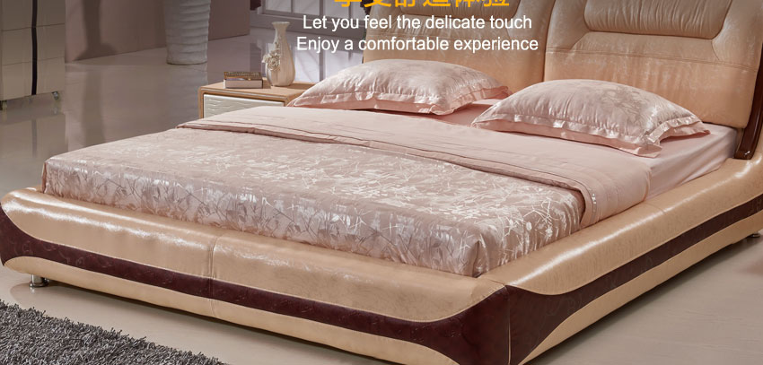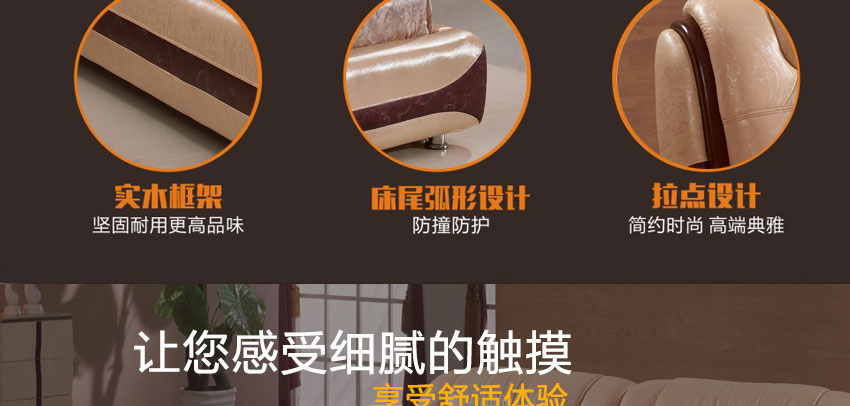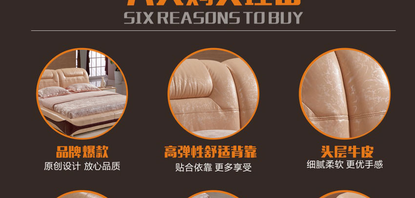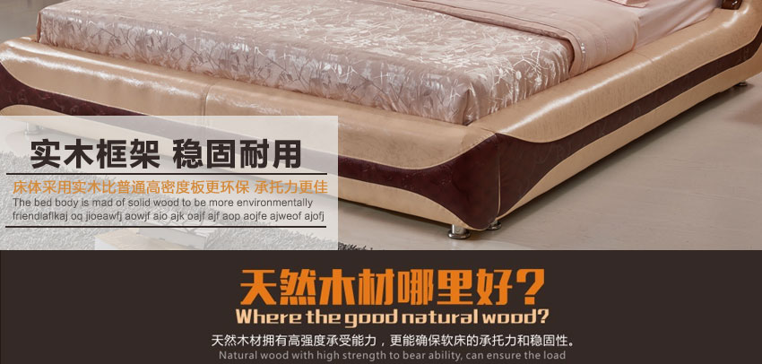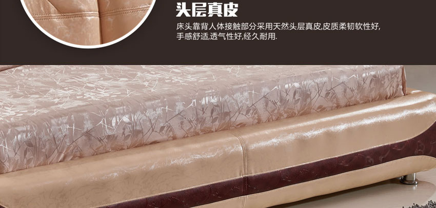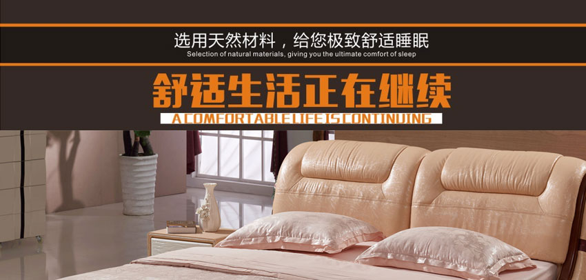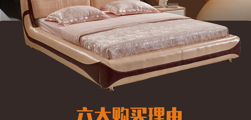 奥琼现代床实木床架1.8米头层牛皮卧室舒适床双人床家具8843