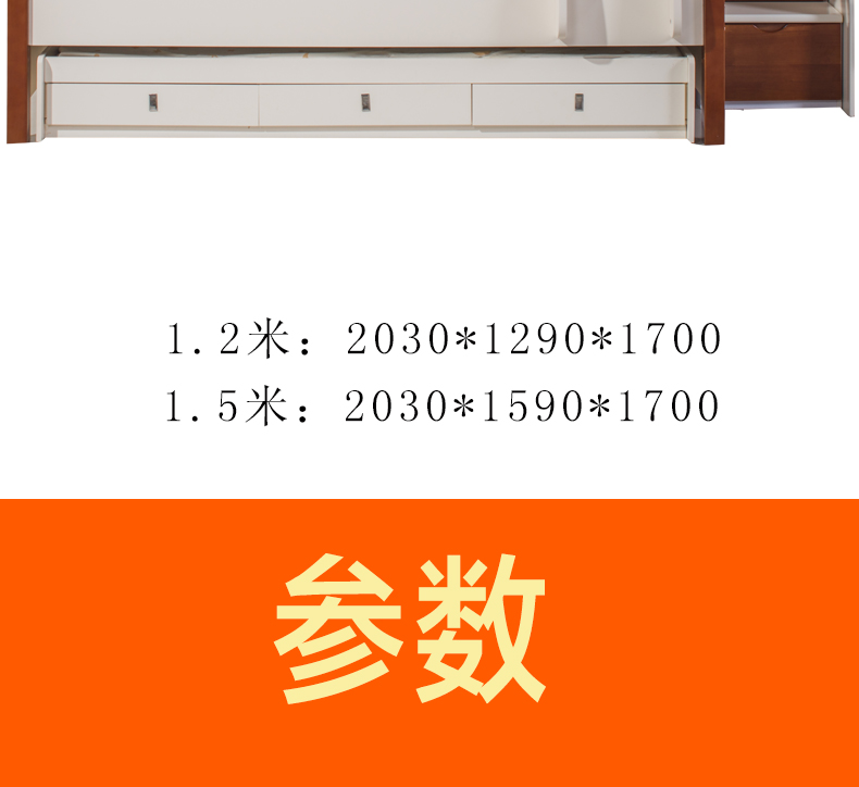 尺寸:1.2M床外径:2030*1290*1700mm 1.5M床外径:2030*1590*1700mm