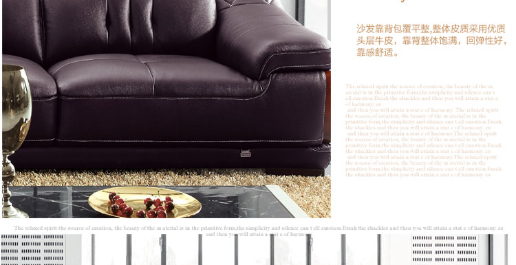 进口头层真皮沙发线条流畅简洁,厚实饱满,温暖色调的自然美,极具艺术美感,强烈的贵族风情。让人感觉舒适,享受奢华。简约坚固 外观细腻淡雅,自然简洁,形尚简约