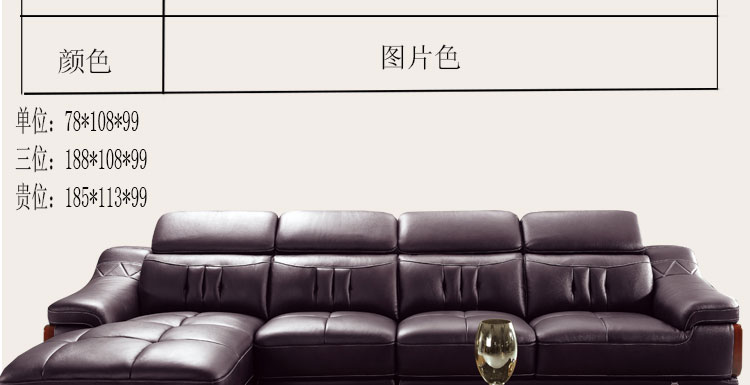 纬图 头层牛皮真皮现代沙发客厅高档沙发转角皮艺沙发贵妃组合套装3306