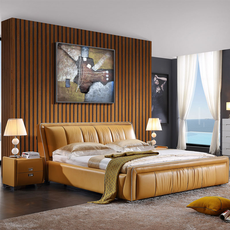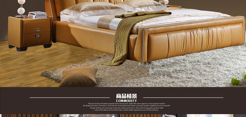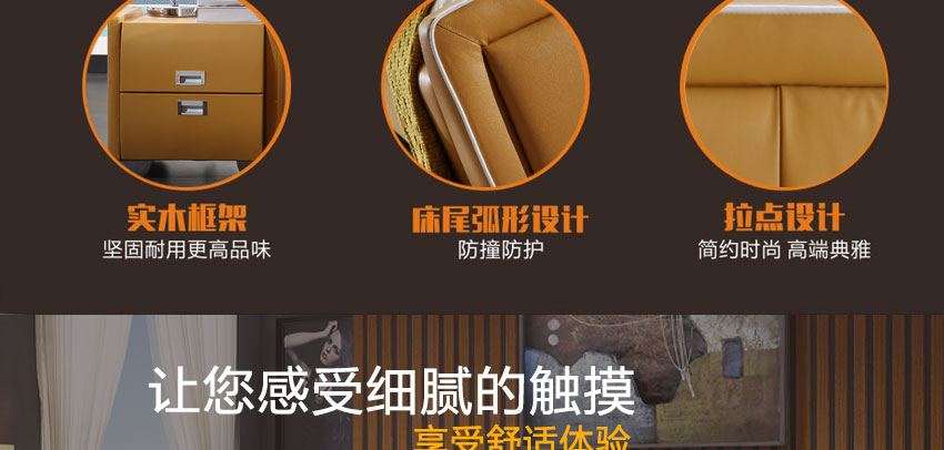 库斯现代简约真皮床 牛皮皮艺实木床 双人床 实木床软床 1.8米结婚床KS2321