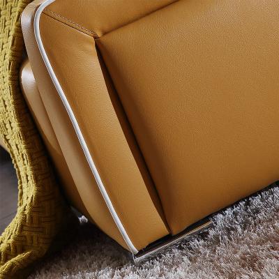 采用实木框架,变形率低,经久耐用。皮料为头层牛皮,柔软舒适,透气性、延展性好。设计简约现代,是您满意的选择!