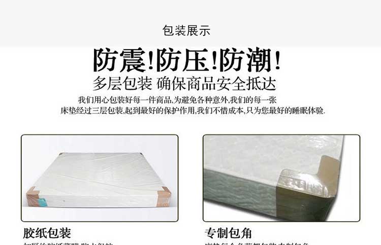 收到床垫无比惊喜、包装严实,打开后床垫做工特别精致、厚实,面料手感细滑,让人有种躺上去冲动..