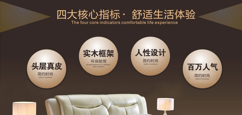 采用实木框架,变形率低,经久耐用。皮料为头层牛皮,柔软舒适,透气性、延展性好。设计简约现代,是您满意的选择!