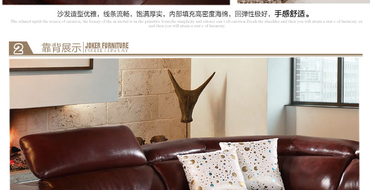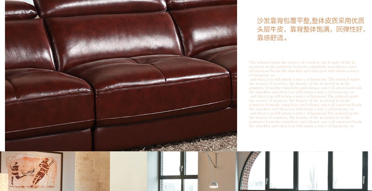 进口头层真皮沙发线条流畅简洁,厚实饱满,温暖色调的自然美,极具艺术美感,强烈的贵族风情。让人感觉舒适,享受奢华。简约坚固 外观细腻淡雅,自然简洁,形尚简约