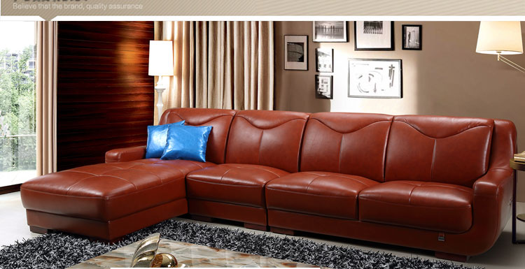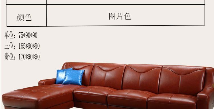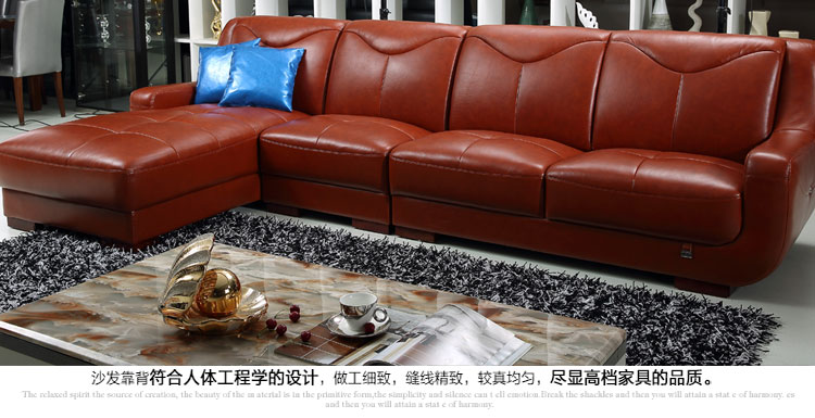 纬图 现代转角皮艺沙发头层牛皮真皮沙发客厅高档沙发贵妃组合套装W-3327#