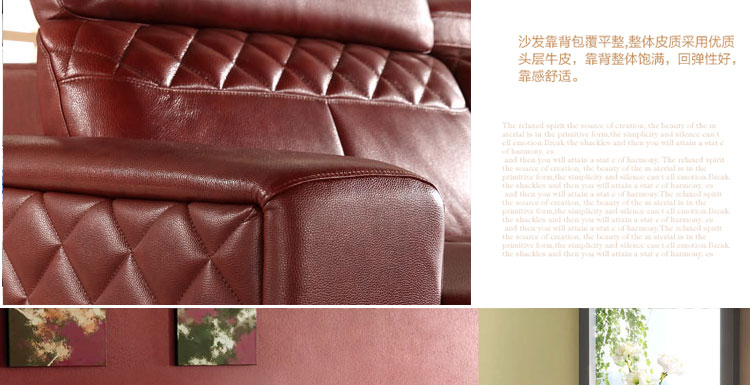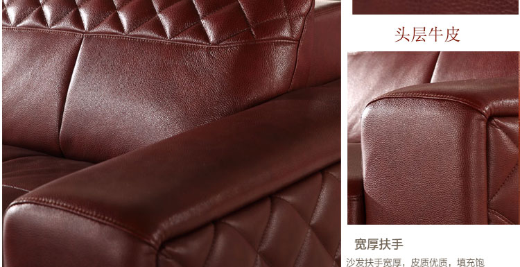 进口头层真皮沙发线条流畅简洁,厚实饱满,温暖色调的自然美,极具艺术美感,强烈的贵族风情。让人感觉舒适,享受奢华。简约坚固 外观细腻淡雅,自然简洁,形尚简约