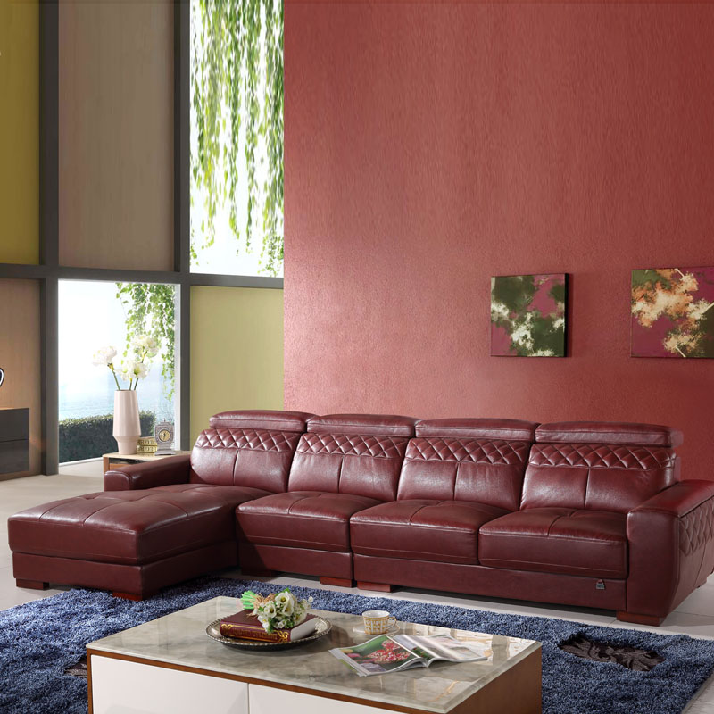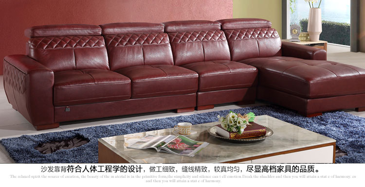 纬图 高档沙发转角皮艺沙发贵妃组合套装现代头层牛皮真皮沙发客厅W-3329#