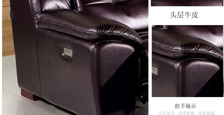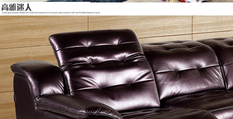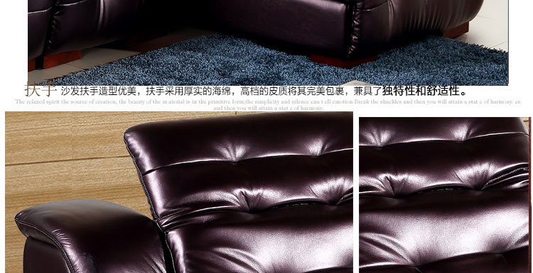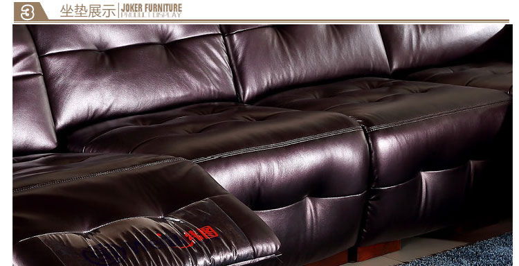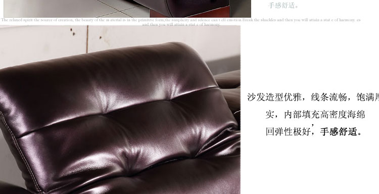 人体接触面是中厚牛皮的,皮质柔软细腻,应该是头层牛皮。沙发不软不硬,弹性适中,性价比极高