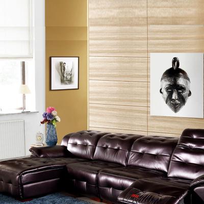 沙发已经摆放好了,质量真不错,真皮的质感很好。