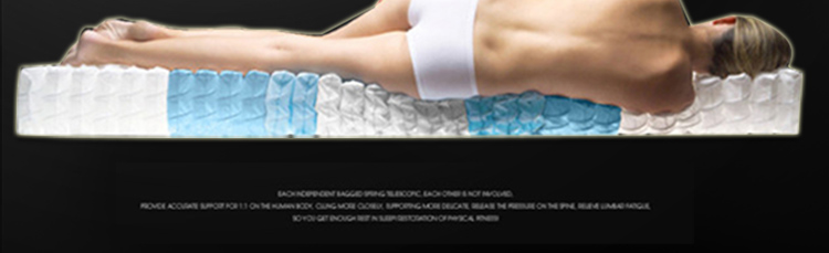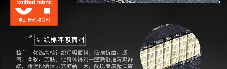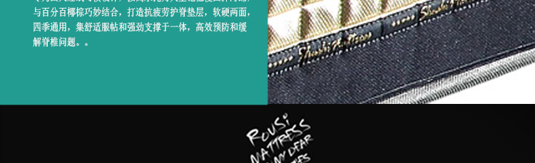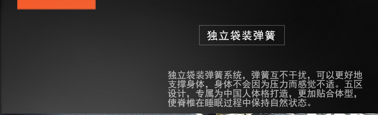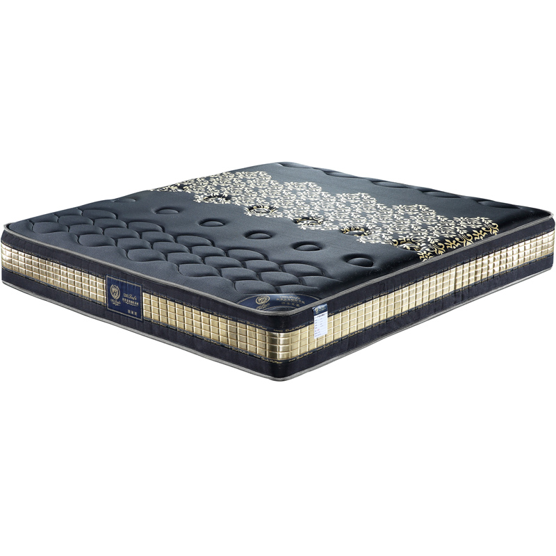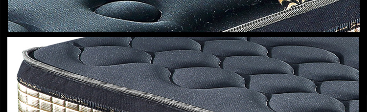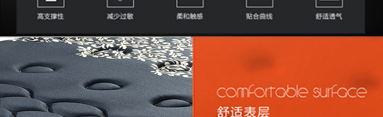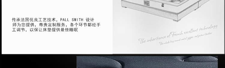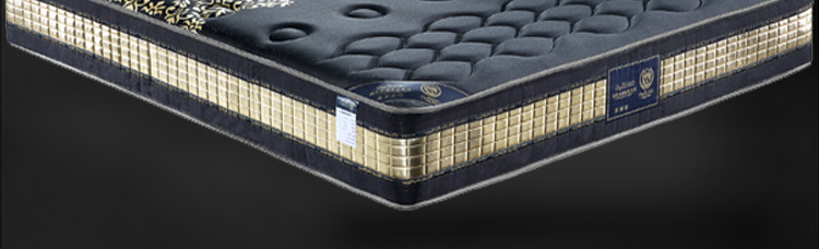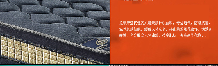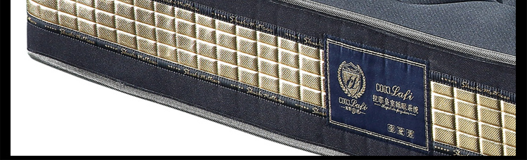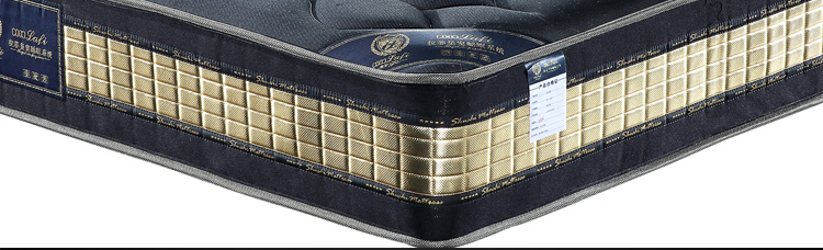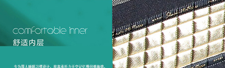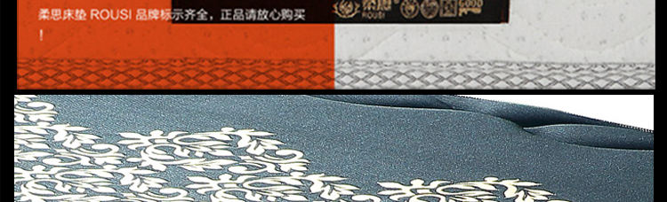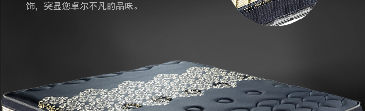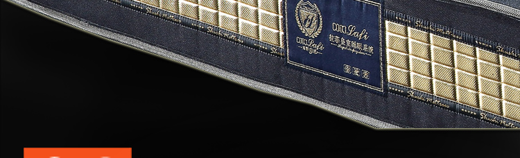 1.独立金色绣花图形.美国进口土豪金面料。2.9区独立袋装弹簧的圆柱型弹簧分区分段设计。3.采用高贵金色皮类侧边搭配。