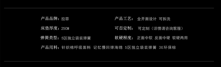 拉菲正品九区独立弹簧床垫 席梦思 软硬两用1.2 1.5/1.8米单双人床垫 黑色床垫LF-60