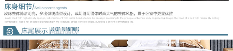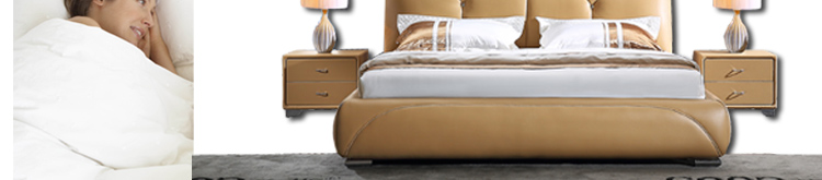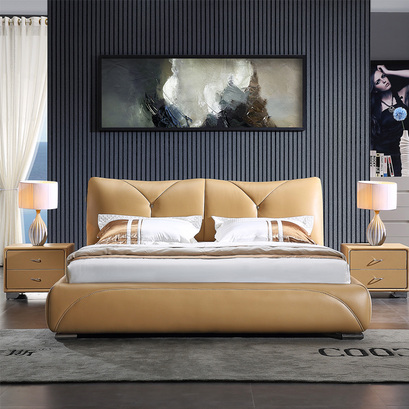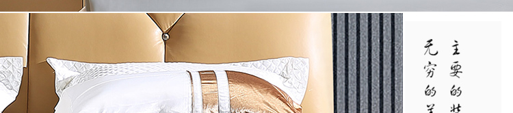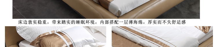 皮床款式简约大气,用料上乘,做工好,靠背舒服,床体扎实。包装完好,没有磕碰的地方,跟家装很搭,喜欢!