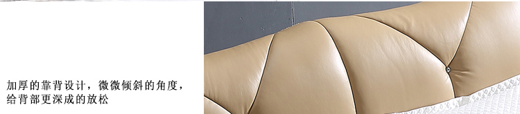 采用实木框架,变形率低,经久耐用。皮料为头层牛皮,柔软舒适,透气性、延展性好。设计简约现代,是您满意的选择!