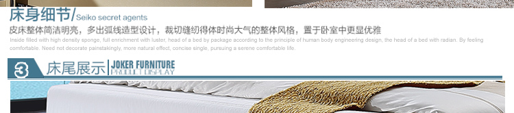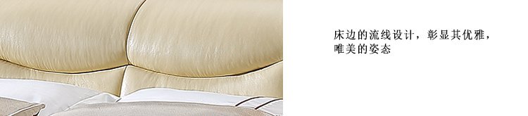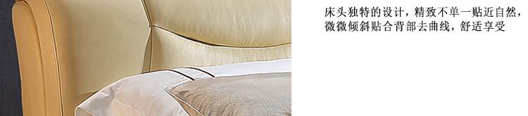皮床款式简约大气,用料上乘,做工好,靠背舒服,床体扎实。包装完好,没有磕碰的地方,跟家装很搭,喜欢!