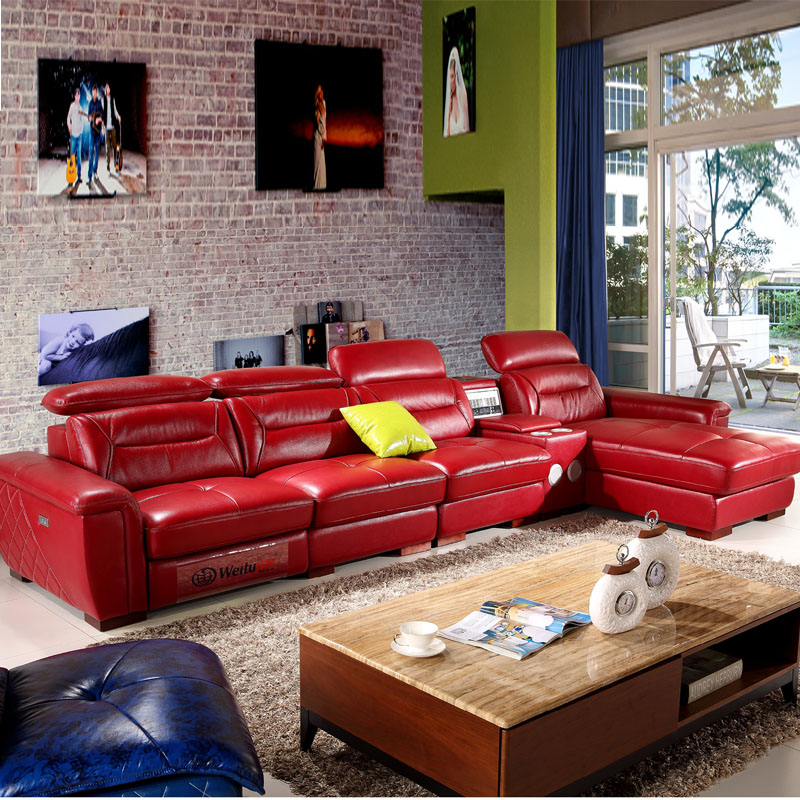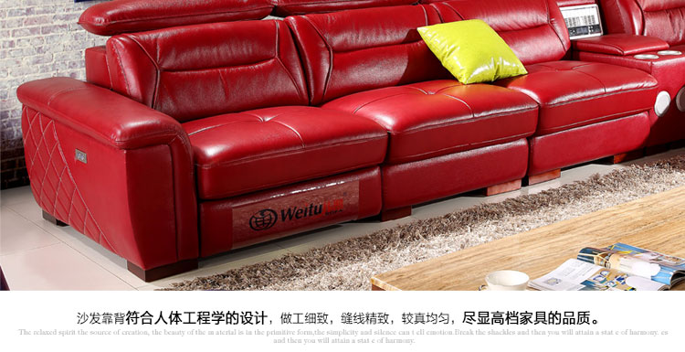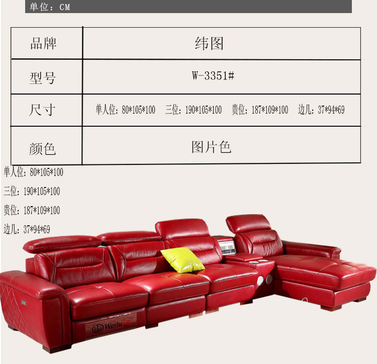 纬图客厅高档沙发现代头层牛皮真皮沙发转角皮艺沙发贵妃组合套装W-3351#