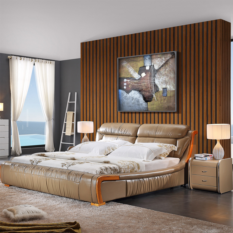 库斯真皮床简约现代双人床正品牌实木软床 KS2316
