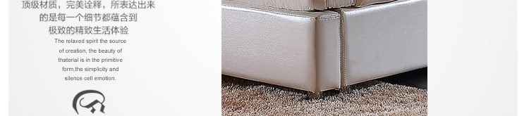 采用实木框架,变形率低,经久耐用。皮料为头层牛皮,柔软舒适,透气性、延展性好。设计简约现代,是您满意的选择!