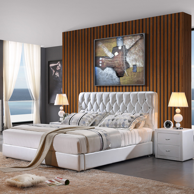 库斯双人床正品牌实木软床 现代简约皮艺实木床KS2317