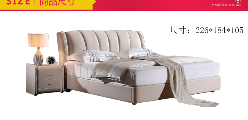 外围尺寸:床:226*184*105; 床头柜:49*43*49;