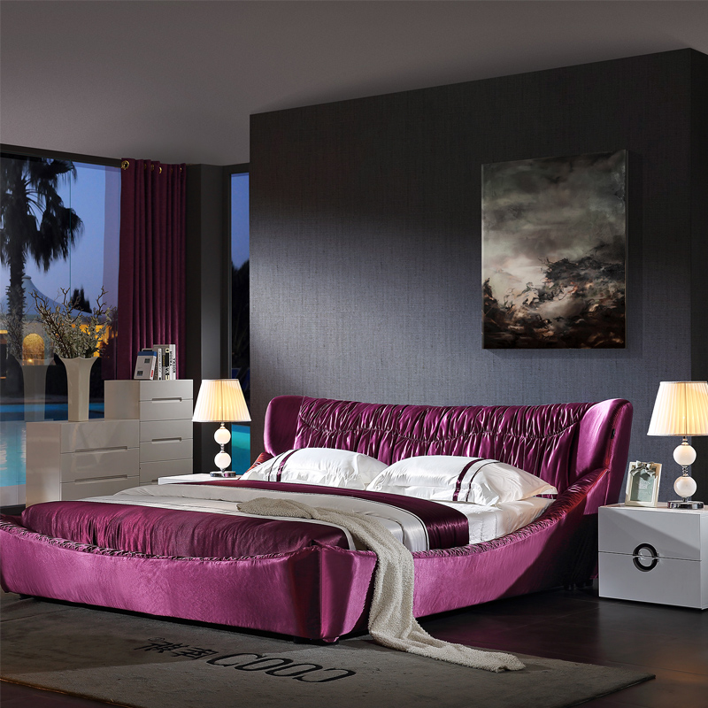 库斯实木布艺床简约现代双人床 现代布艺实木软床KS2245