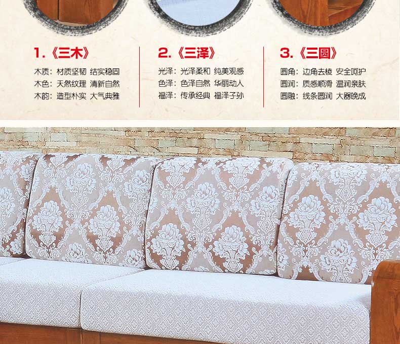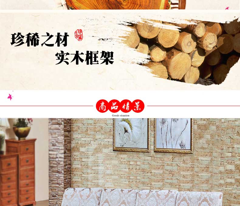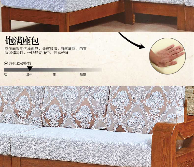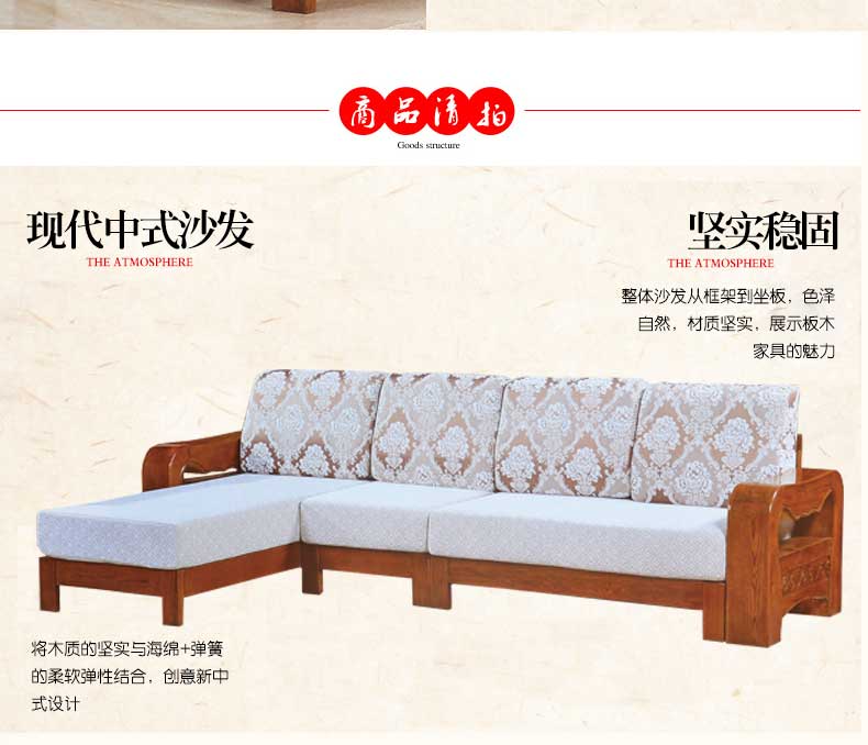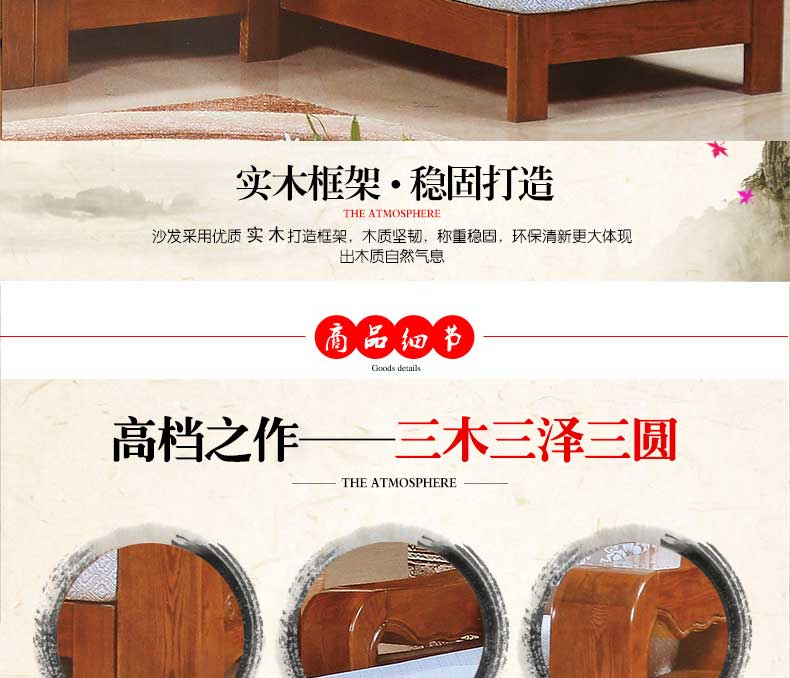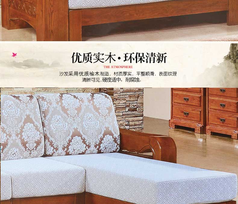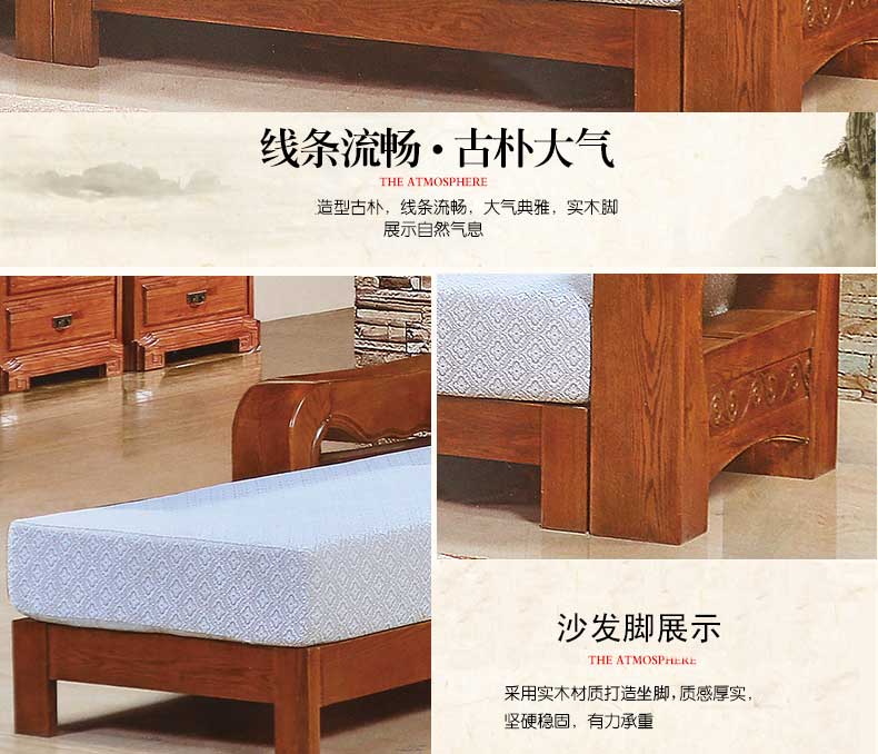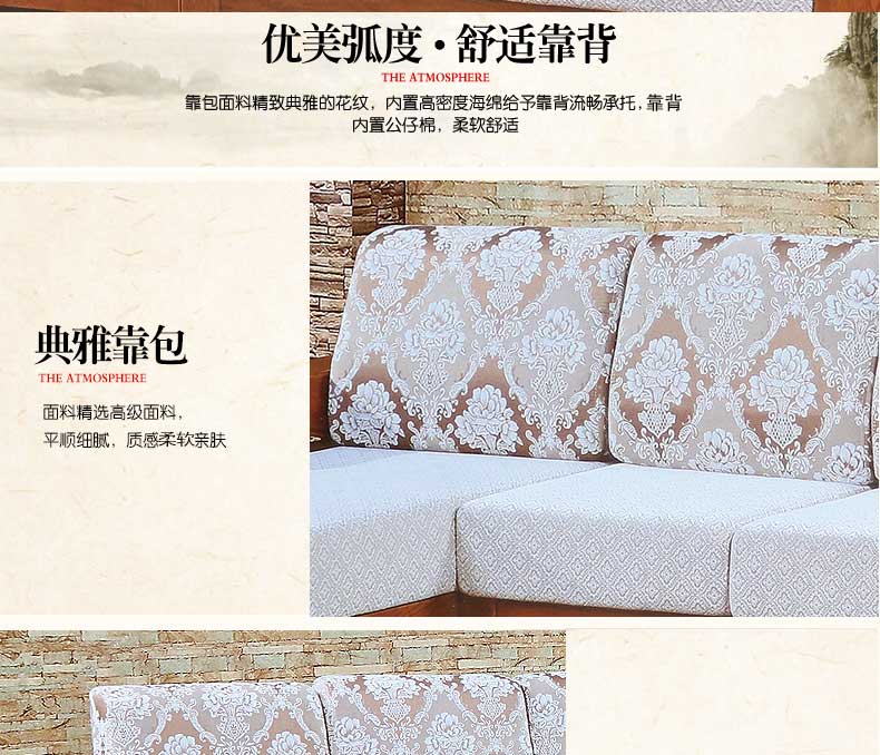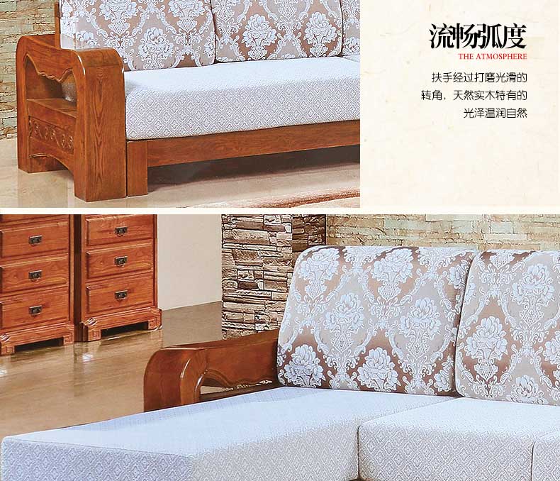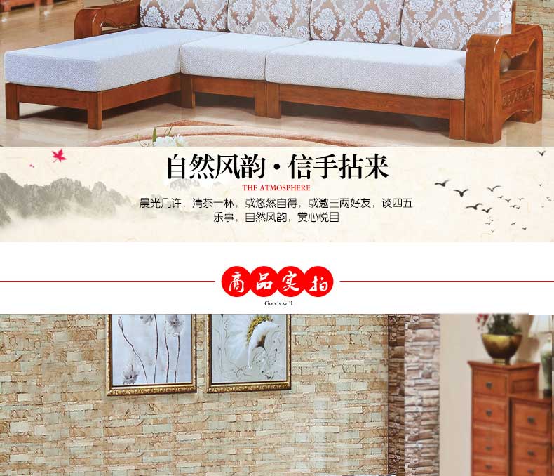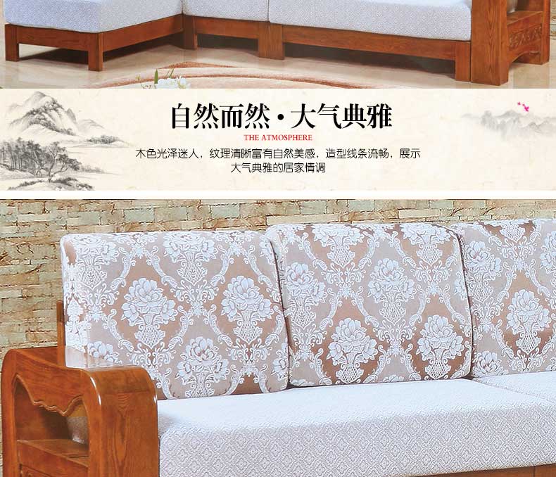 明雅丽 中式新款沙发实木布艺结合沙发大小户型沙发组合16--04