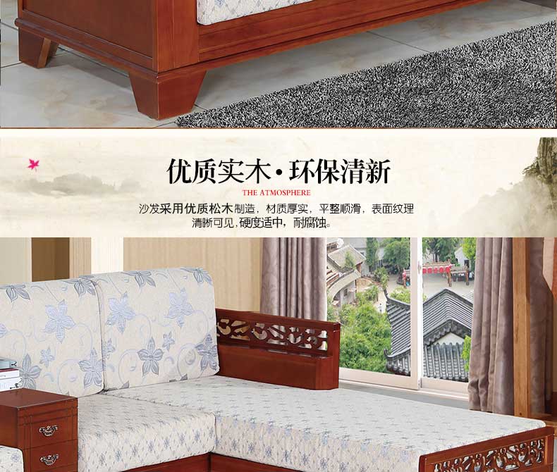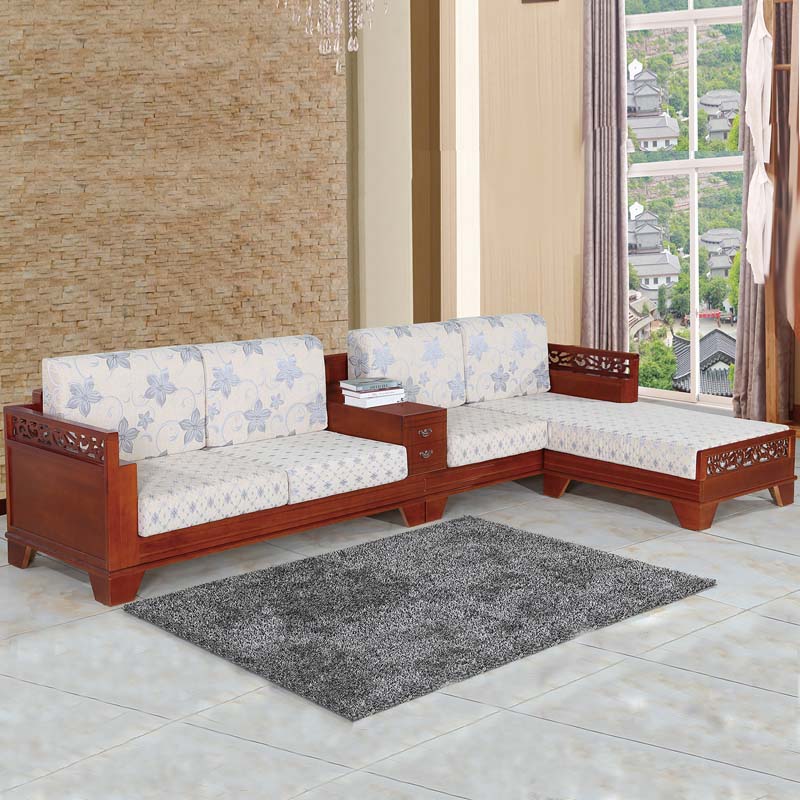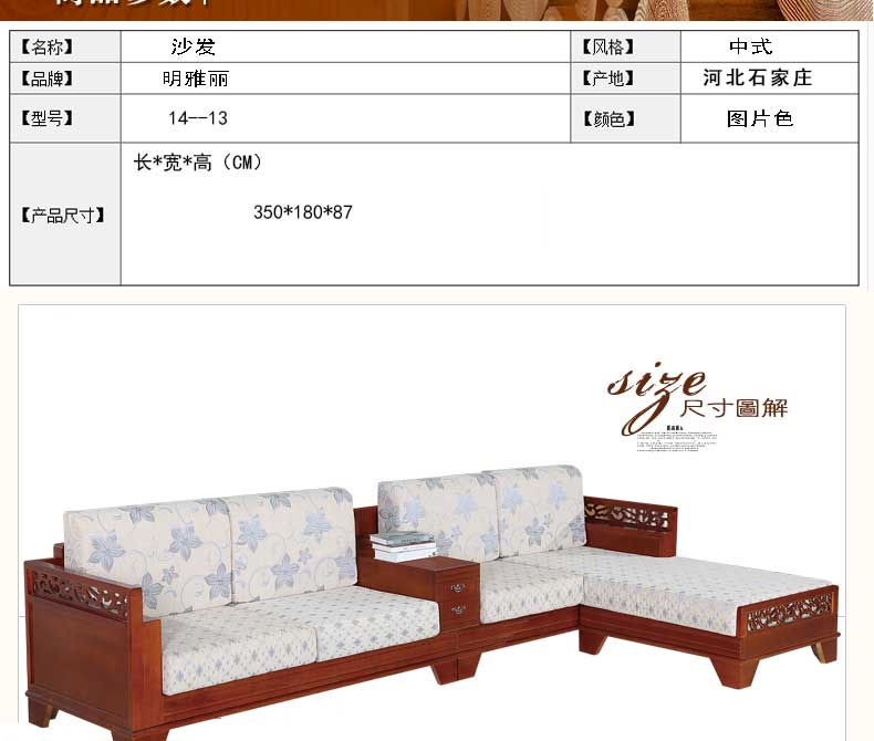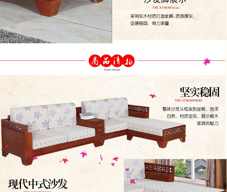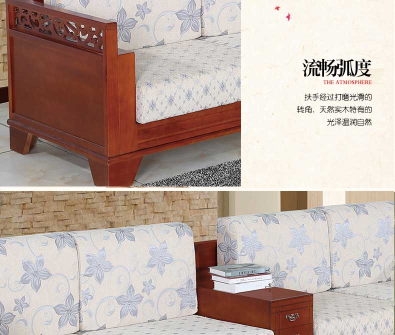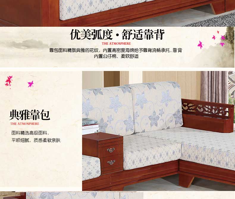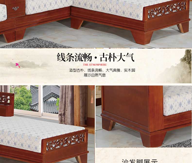 明雅丽 中式新款沙发实木布艺结合L型沙发贵妃位沙发14--13