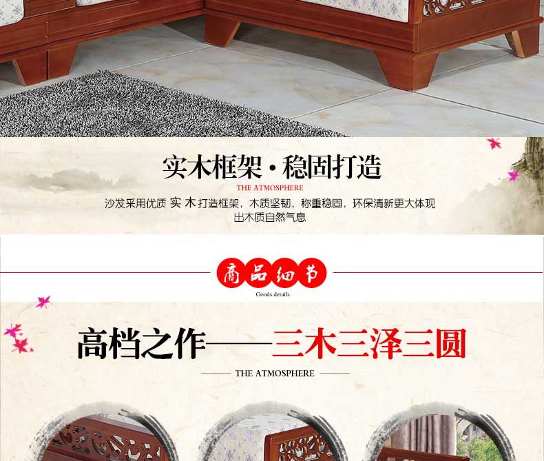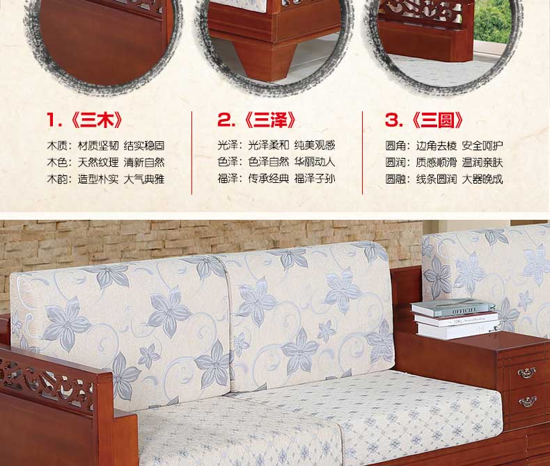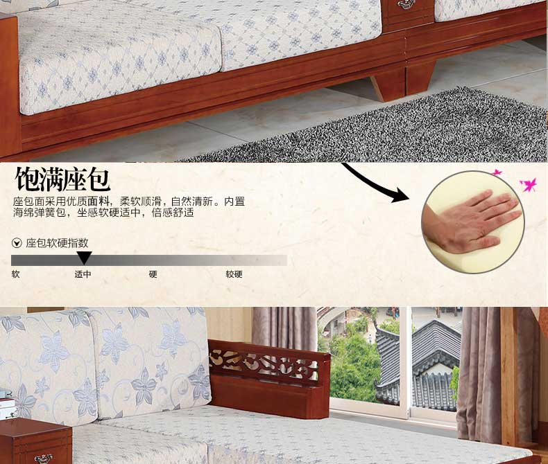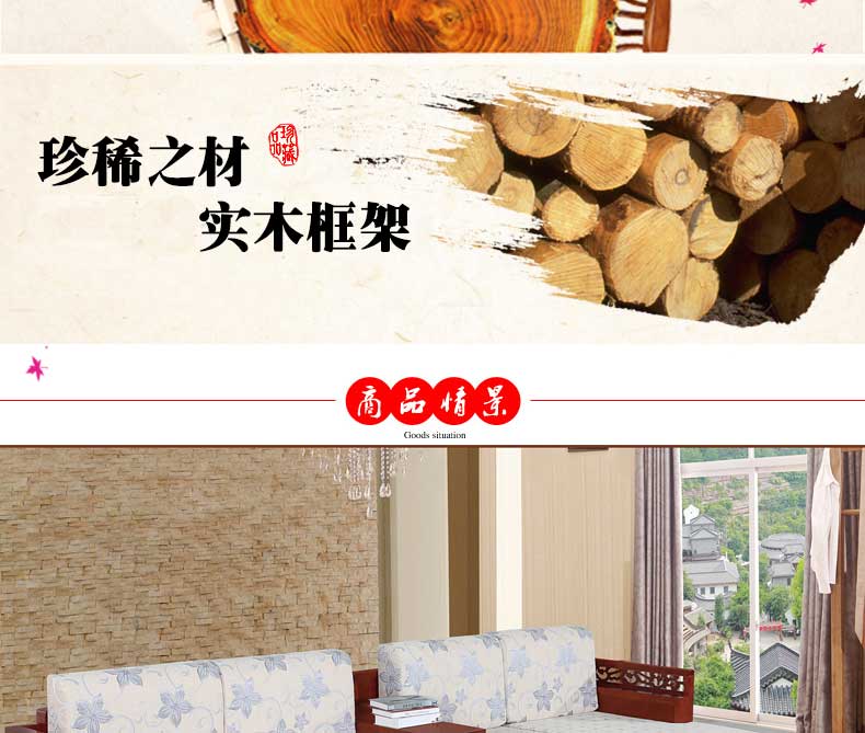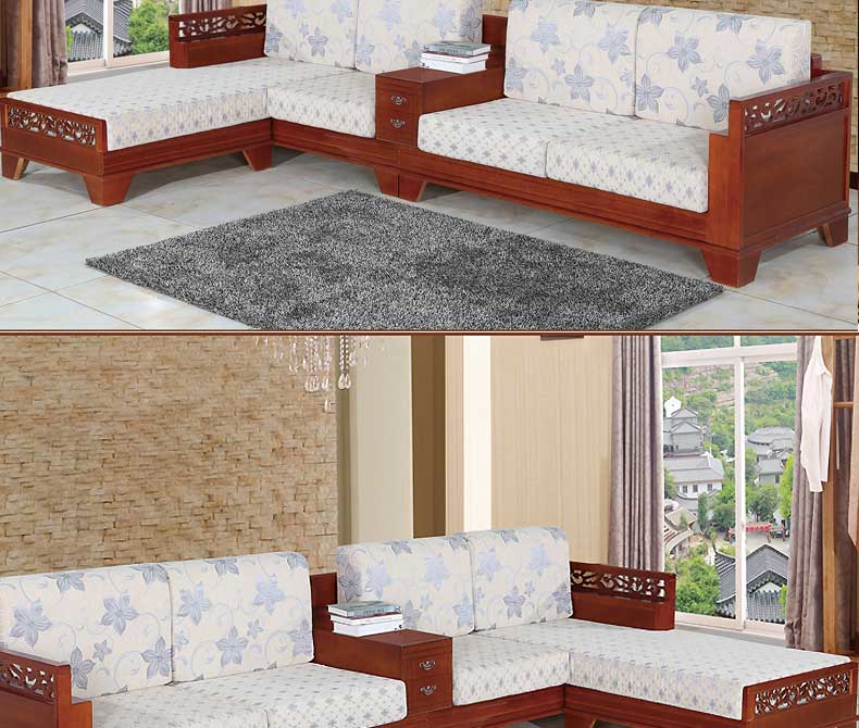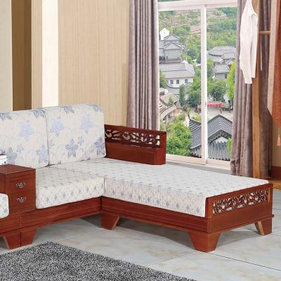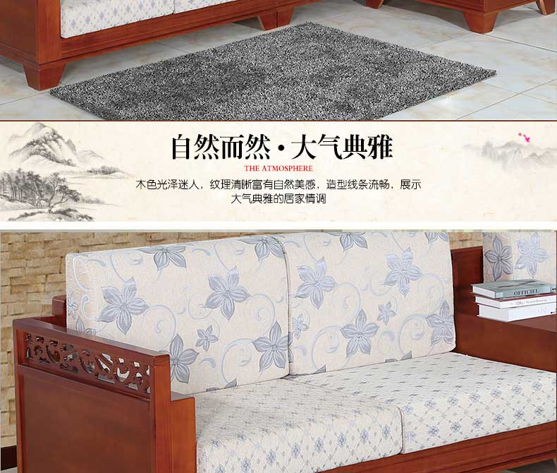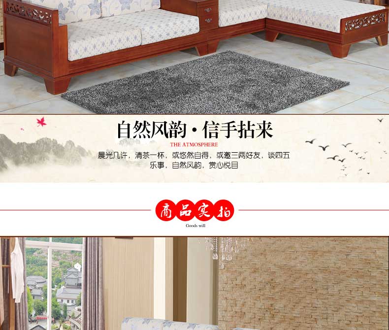明雅丽 中式新款沙发实木布艺结合L型沙发贵妃位沙发14--13