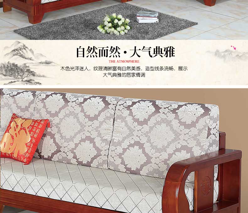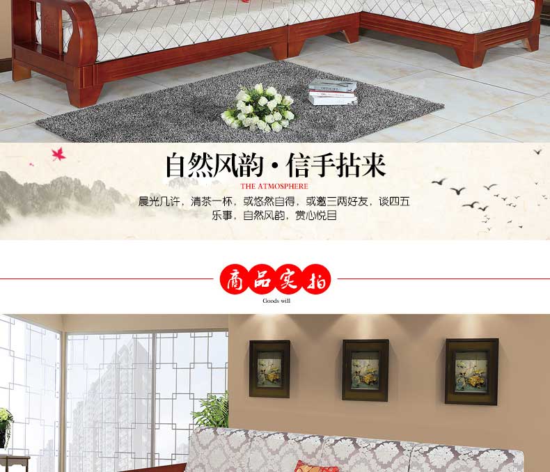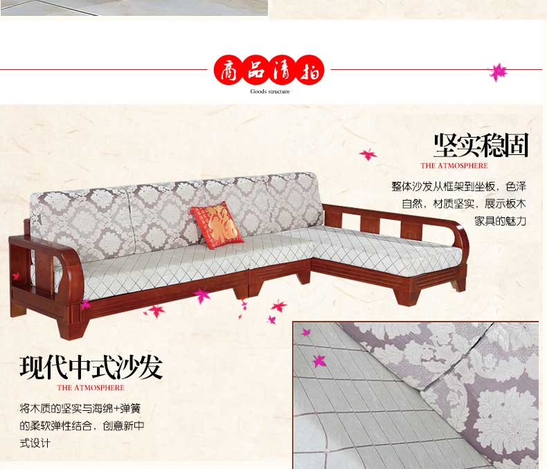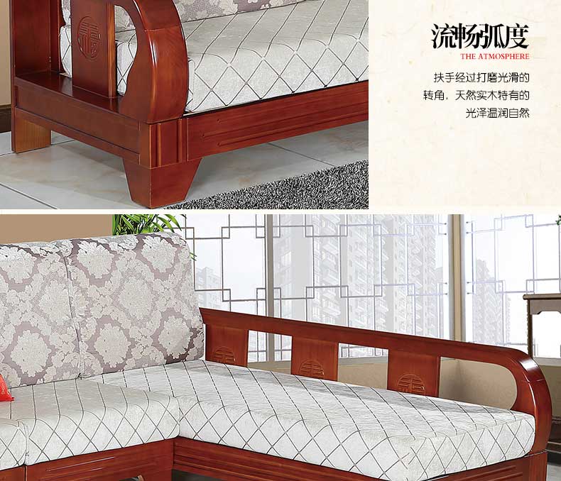 明雅丽 转角沙发中式新款实木沙发组合L型沙发组合14--04