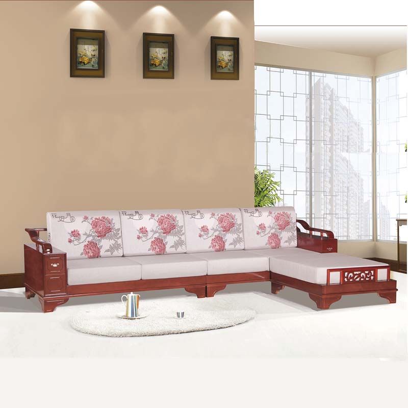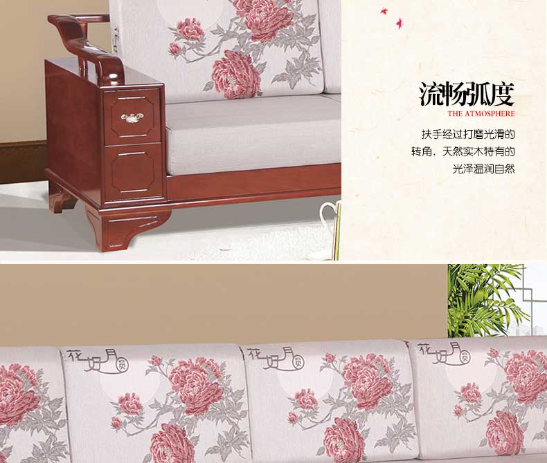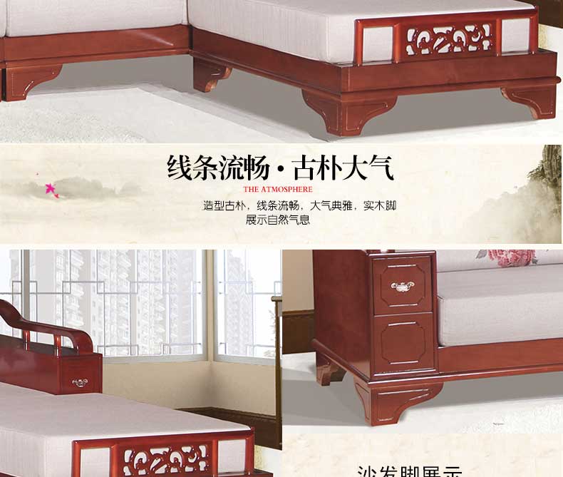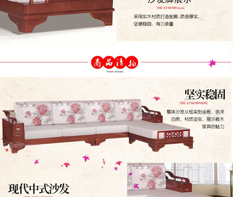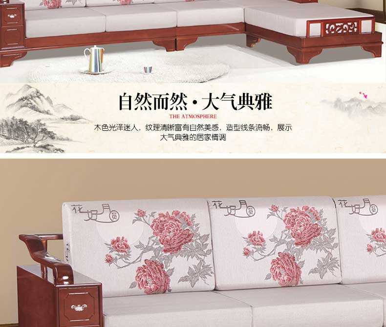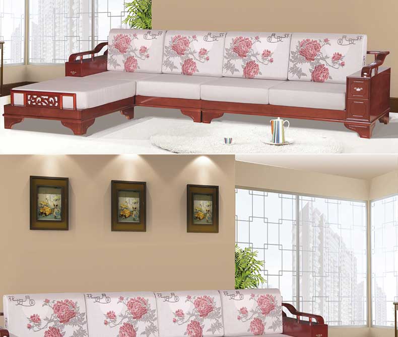 明雅丽 中式新款沙发实木布艺结合L型沙发组合贵妃位沙发明雅丽14--11