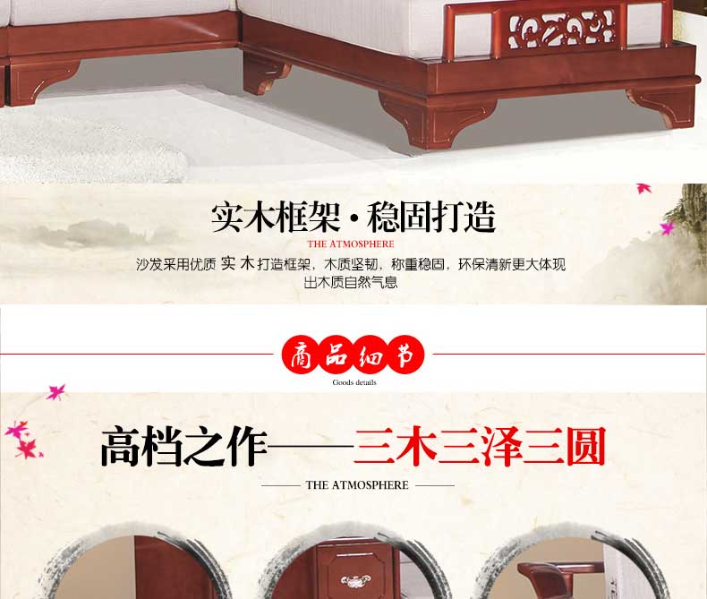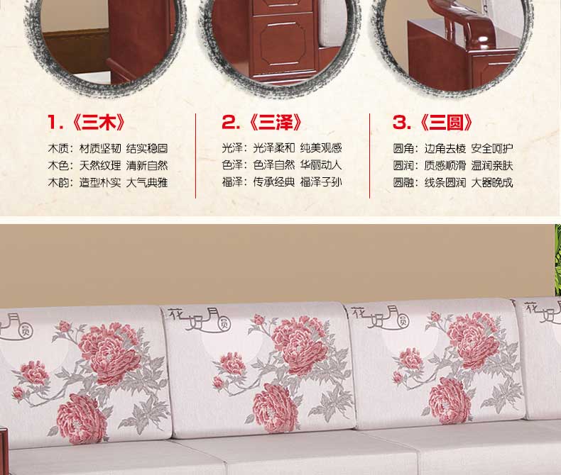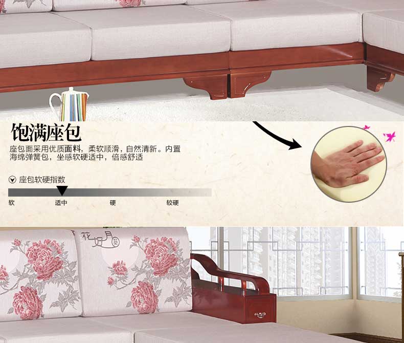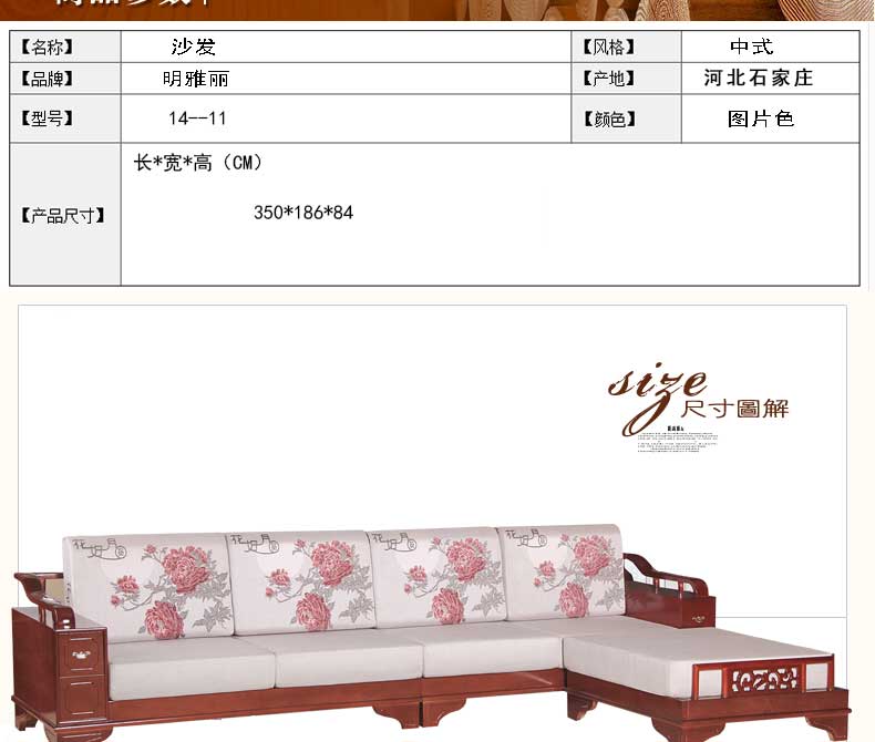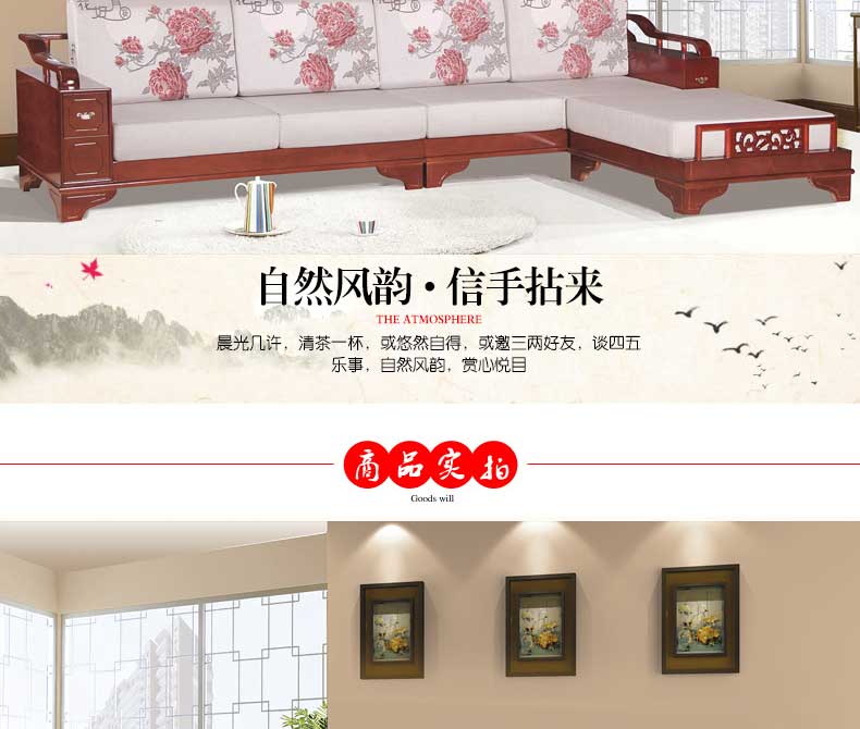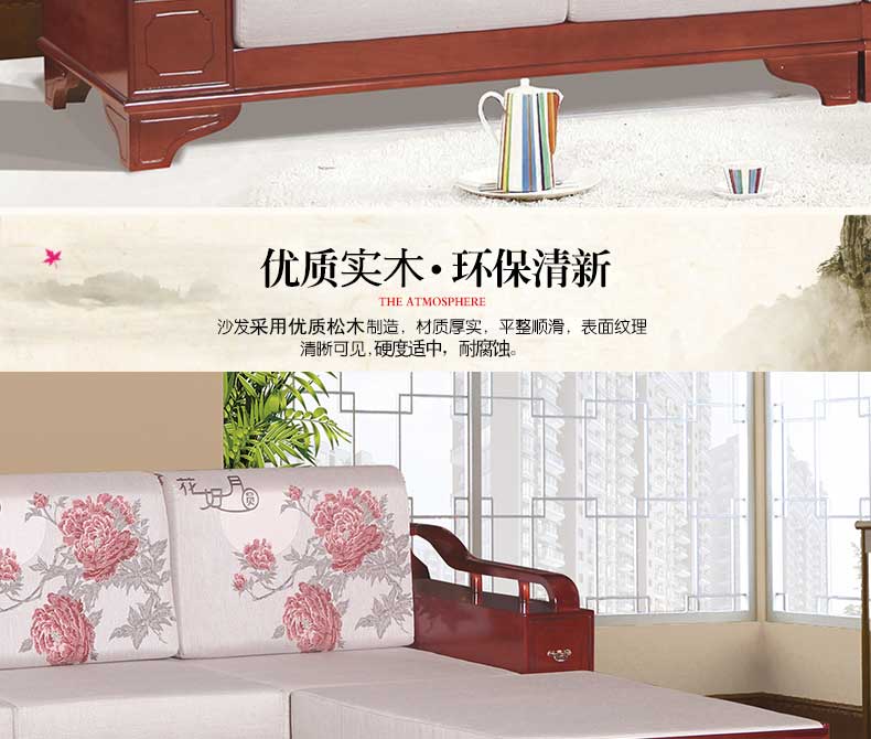 明雅丽 中式新款沙发实木布艺结合L型沙发组合贵妃位沙发明雅丽14--11