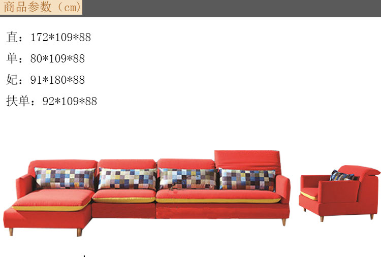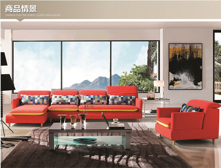 思贝丽 现代简约转角绒布沙发小户型客厅贵妃布艺沙发组合S805B