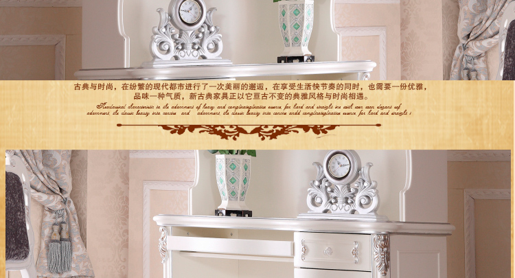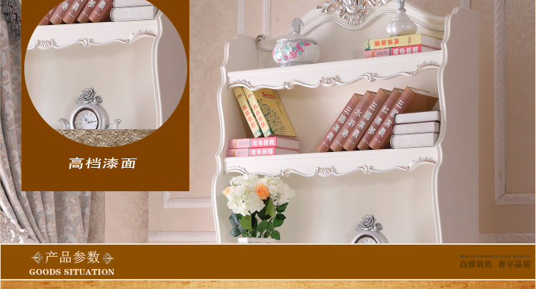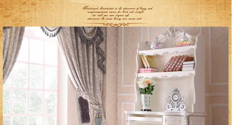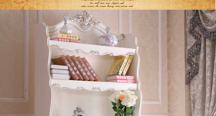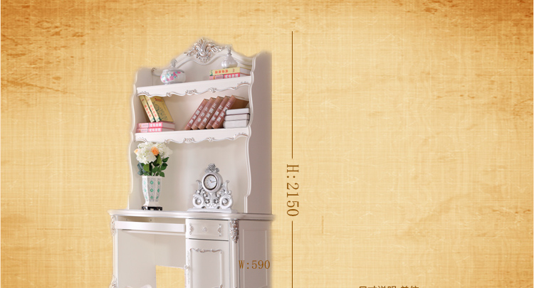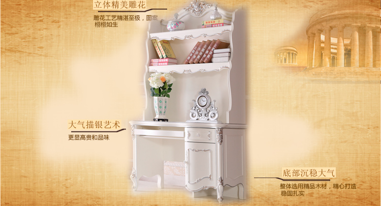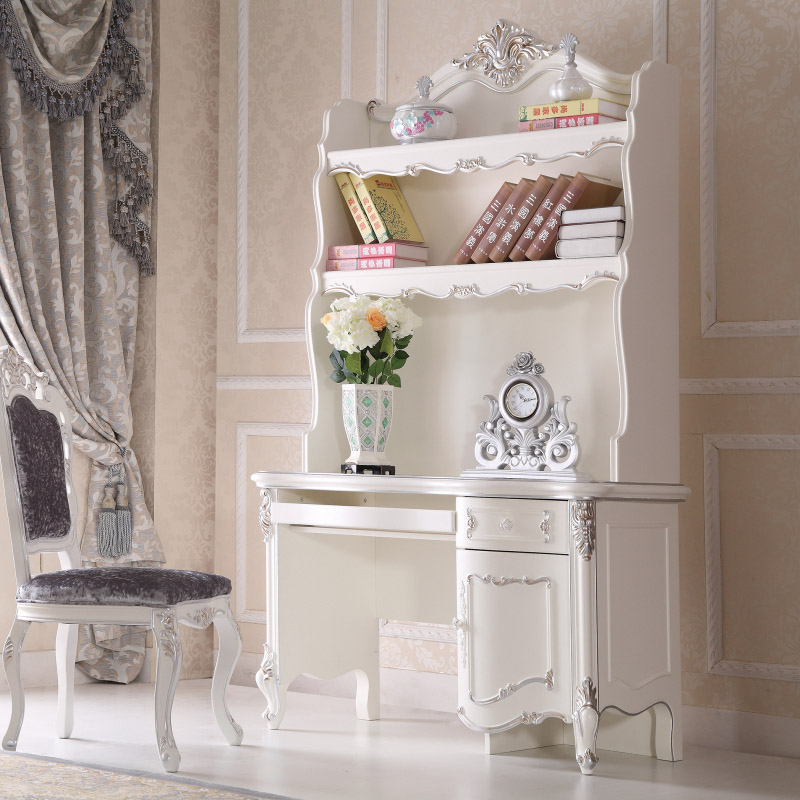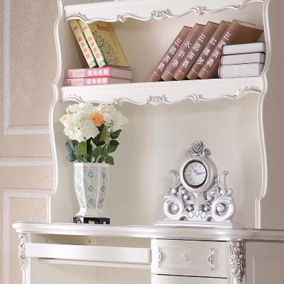尚多家居 SZ801象牙白+银箔做旧法式雕花 书架写字台书桌办公桌