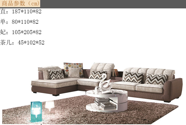 思贝丽 现代简约转角绒布沙发小户型客厅贵妃布艺沙发组合S809B
