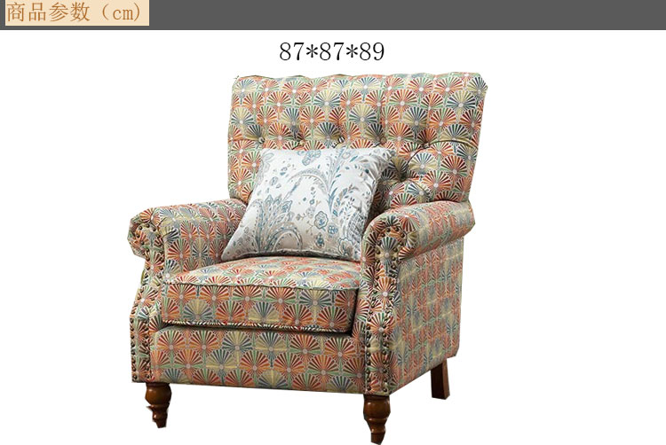 洛奇布兰 简约美式实木布艺沙发椅子单椅休闲老虎椅 Y82