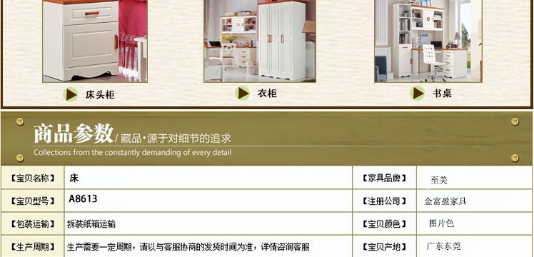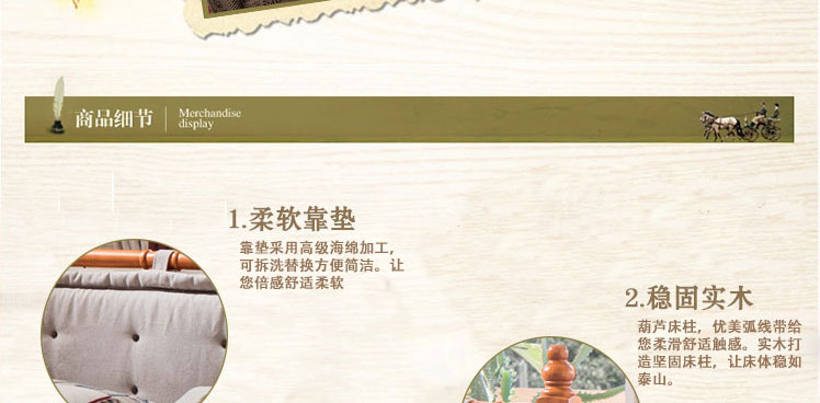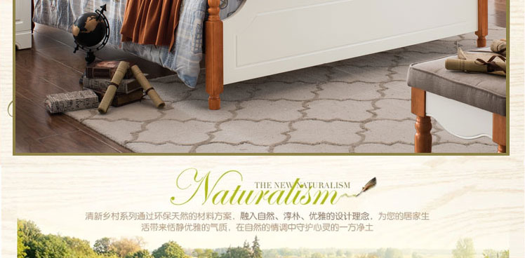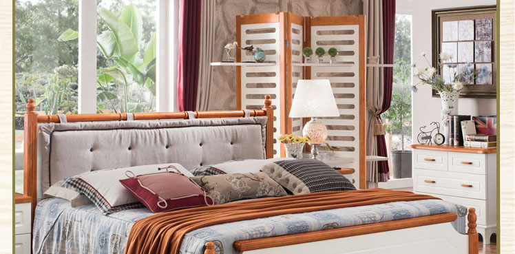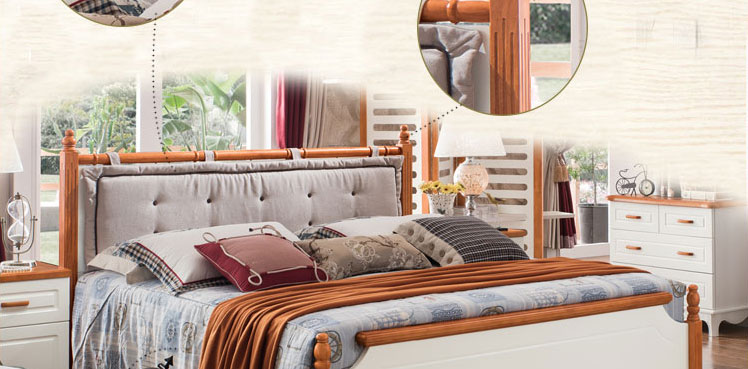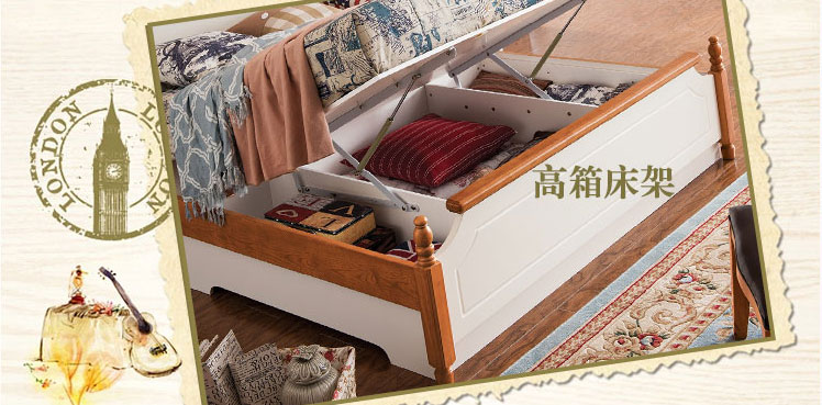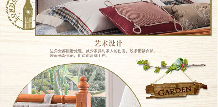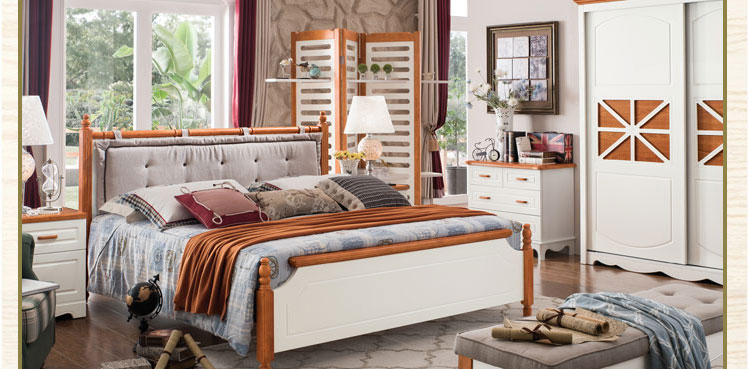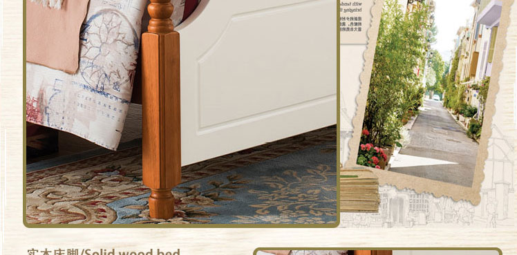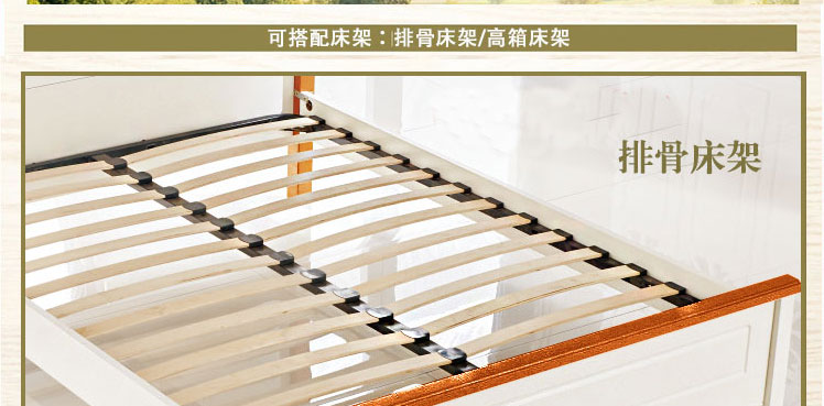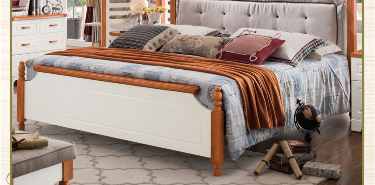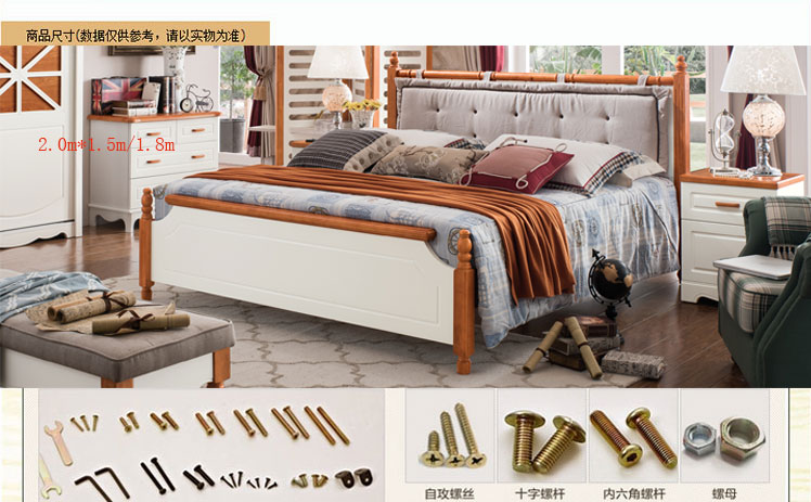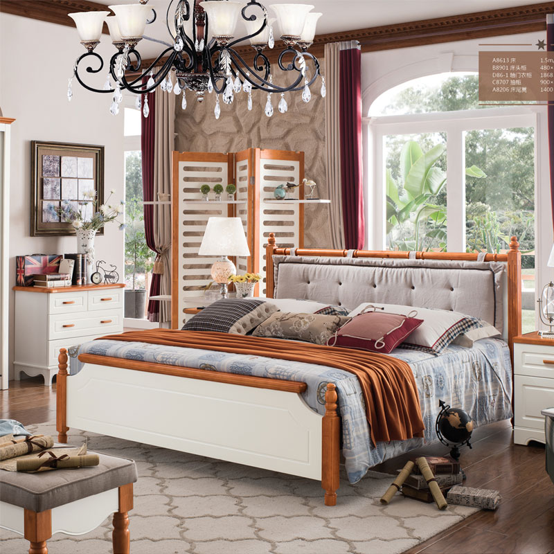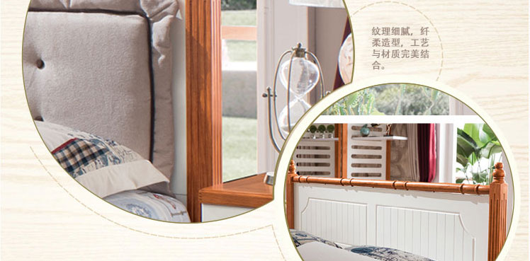至美乡村白色田园风格实木床双人床实木床1.5/1.8米实木布艺床A8613