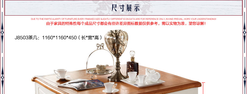 至美乡村系列实木茶几田园风格茶几 家庭必备茶几J8505