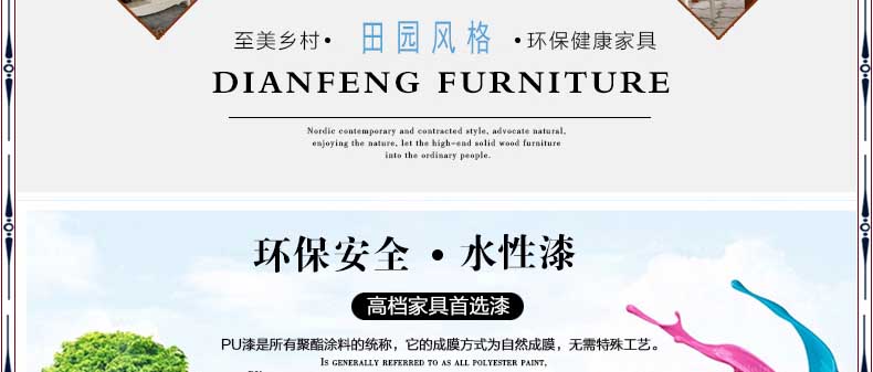 田园风格的设计它摒弃了经典的艺术传统,追求古代田园一派自然清新的气象,在情趣上不是表现强光重彩的华美,而是纯净自然的朴素,以明快清新具有乡土风味为主要特征,以自然随意的款式、朴素的色彩表现一种轻松恬淡的、超凡脱俗的情趣。