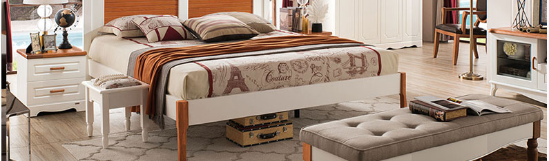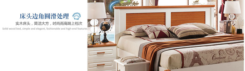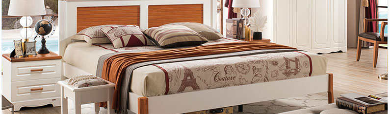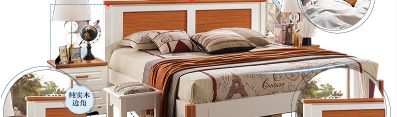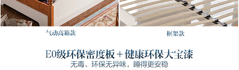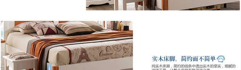 至美乡村全实木田园风格实木床1.5m/1.8m白色田园床A8615