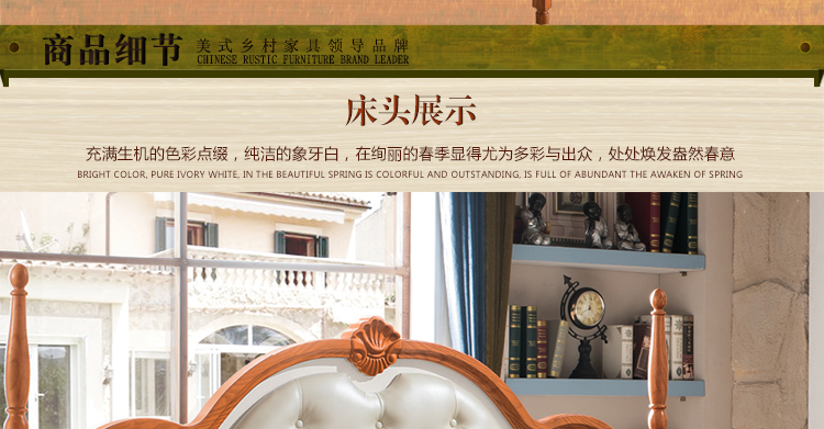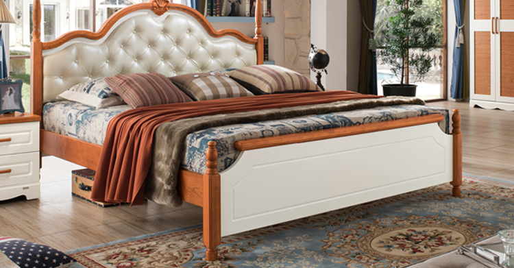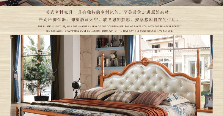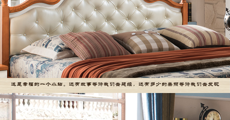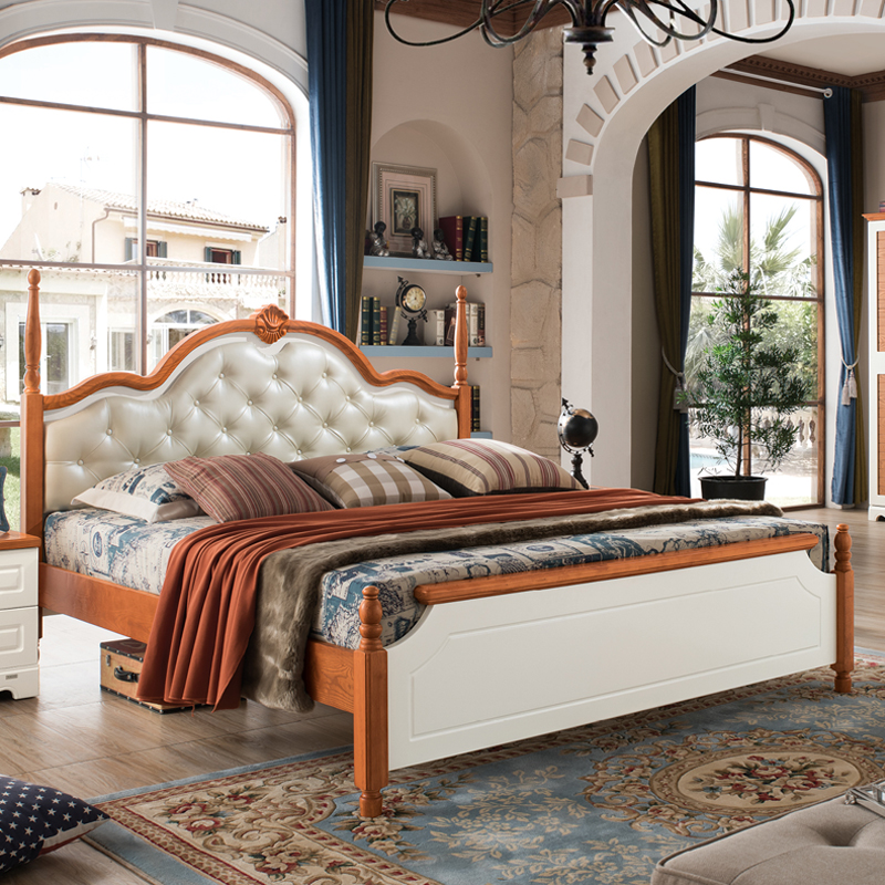 至美乡村田园风格奢华大气实木乡村风格1.5/1.8米皮艺实木床A8616