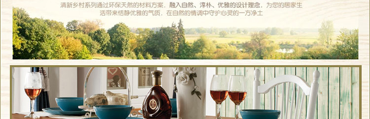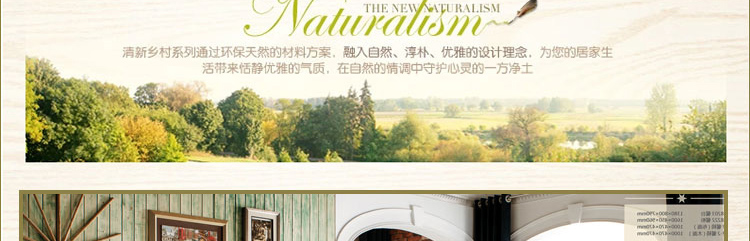 田园风格的设计它摒弃了经典的艺术传统,追求古代田园一派自然清新的气象,在情趣上不是表现强光重彩的华美,而是纯净自然的朴素,以明快清新具有乡土风味为主要特征,以自然随意的款式、朴素的色彩表现一种轻松恬淡的、超凡脱俗的情趣。