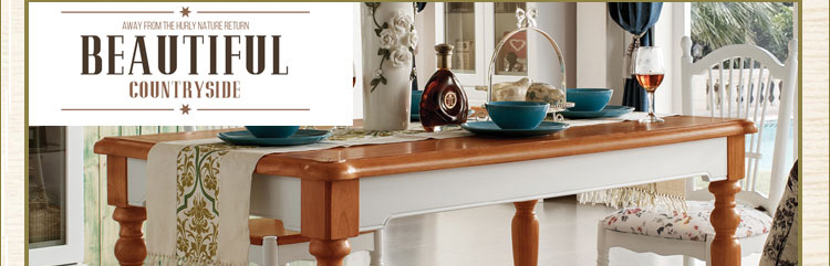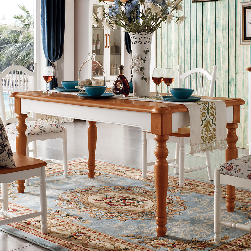 至美乡村系列实木长餐台田园风格餐厅实用白色餐台餐椅M8205