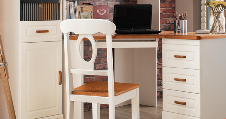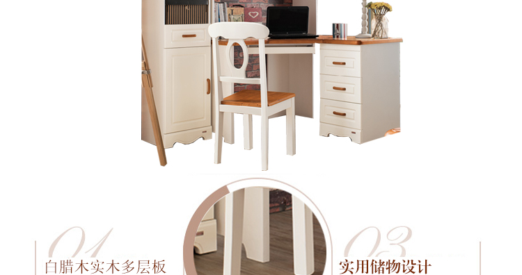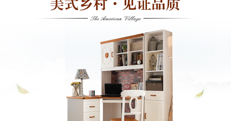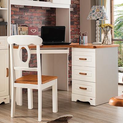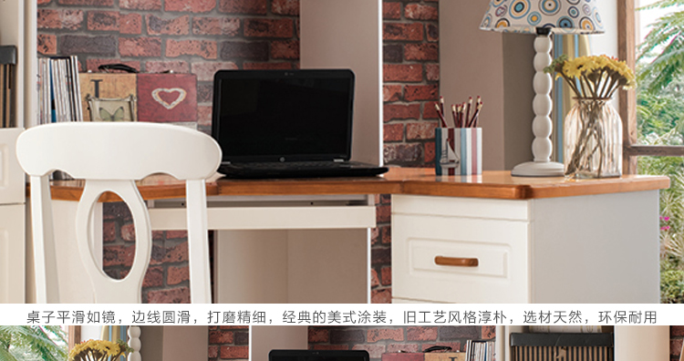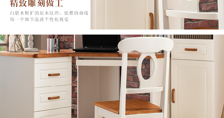 至美乡村书桌电脑桌田园风格转角直角书柜书台实木电脑台书椅组合H8303