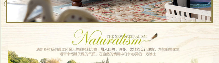 田园风格的设计它摒弃了经典的艺术传统,追求古代田园一派自然清新的气象,在情趣上不是表现强光重彩的华美,而是纯净自然的朴素,以明快清新具有乡土风味为主要特征,以自然随意的款式、朴素的色彩表现一种轻松恬淡的、超凡脱俗的情趣。